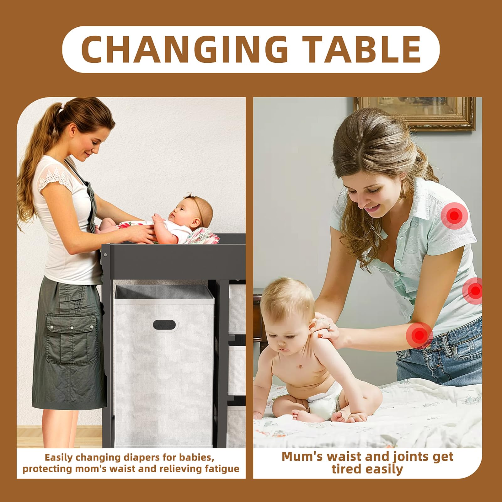 - High-Quality Solid Wood: The table is made of high-quality wood, sturdy and durable. As your child grows, it can be repurposed as a storage cabinet or bedside table. The table height is 34.3 inches, allowing mom to easily change diapers and clothes for the baby without bending over. It takes care of the mother's lumbar spine.