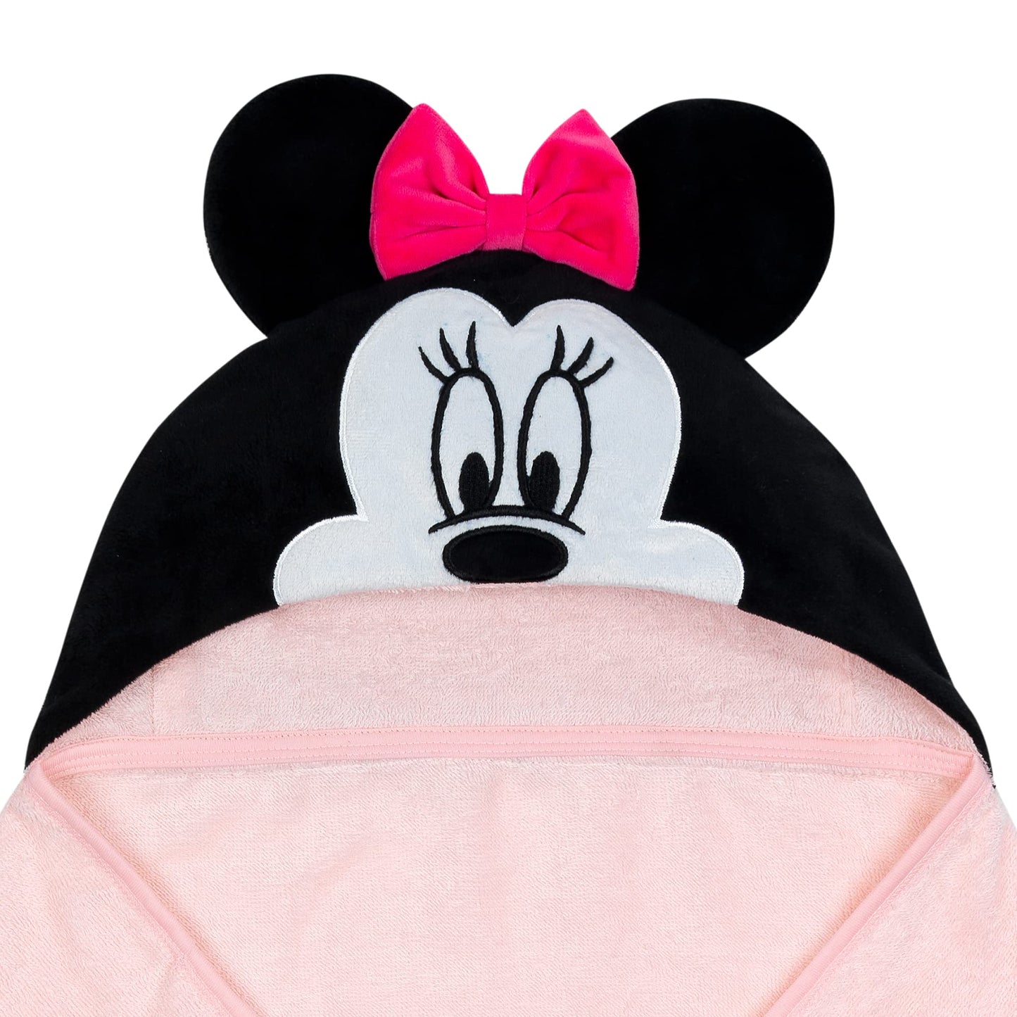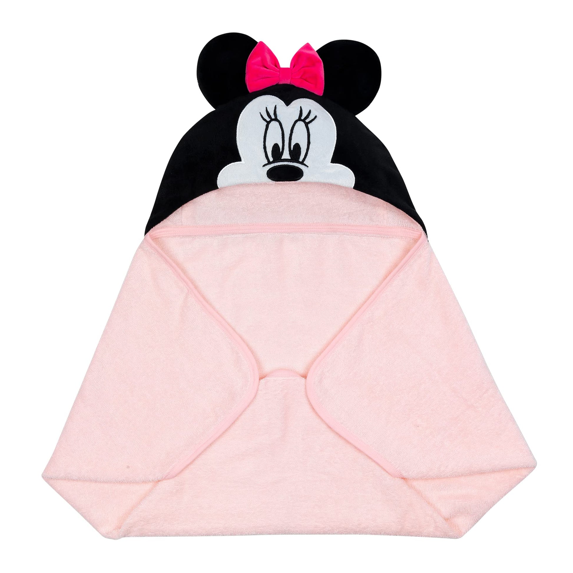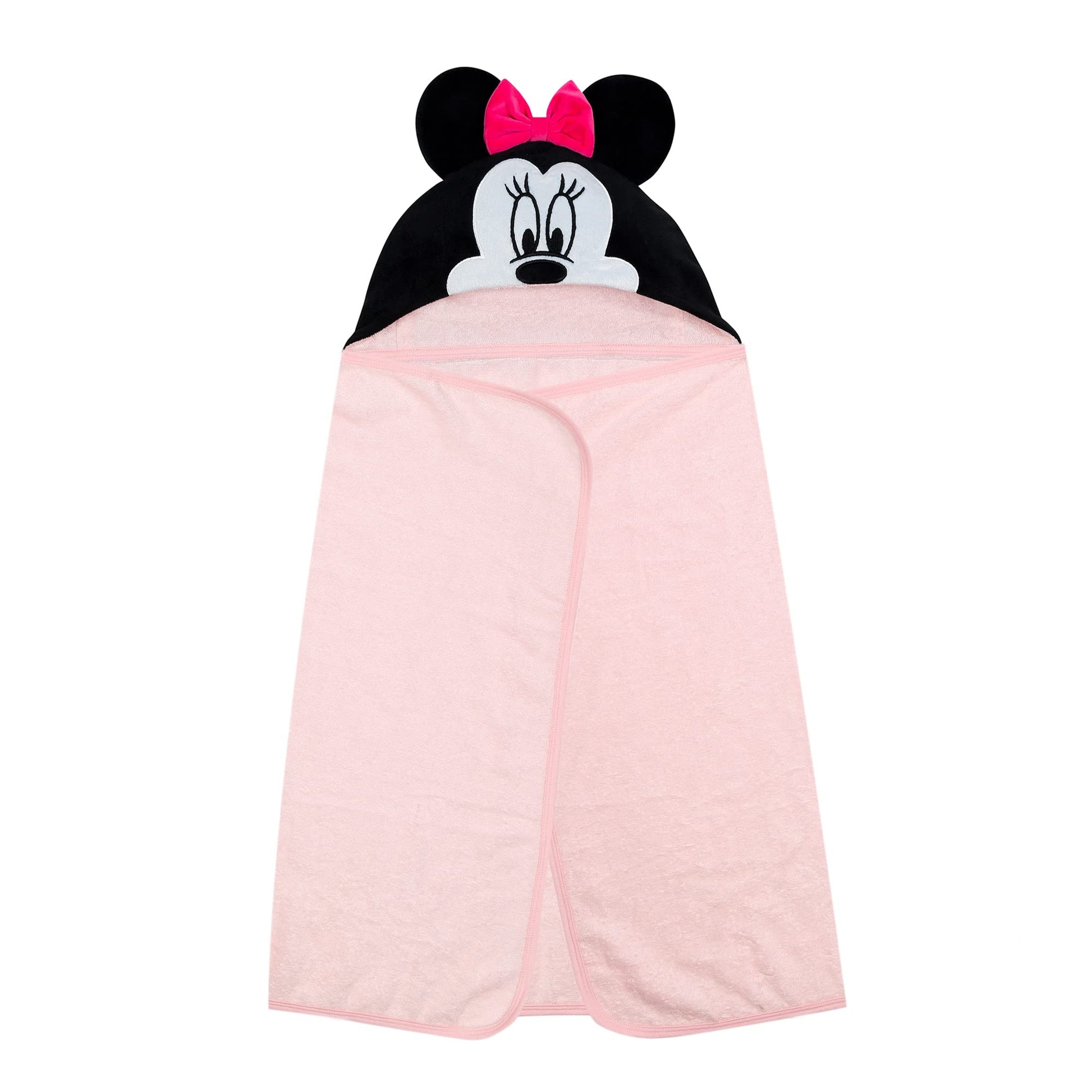 Your child will love being wrapped in this soft and cozy Minnie Mouse hooded towel. The pure cotton terry towel is absorbent, and the binding is a dyed to match cotton jersey.