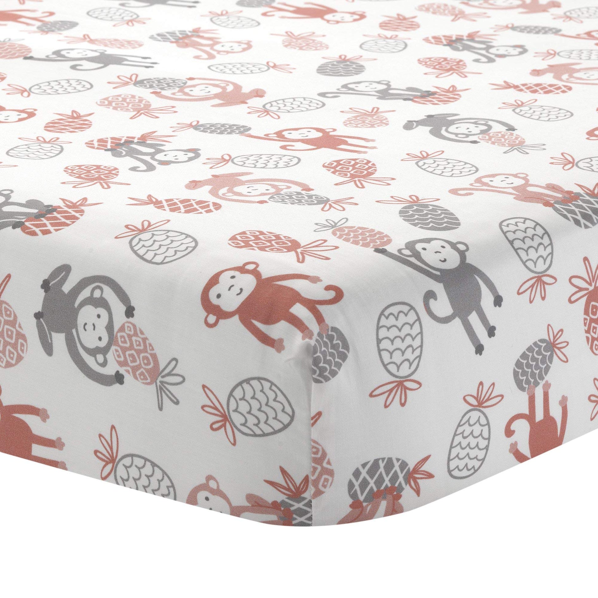 The fitted crib sheet is made of 100% cotton fabric printed with our hand-painted watercolor animals and leaves.