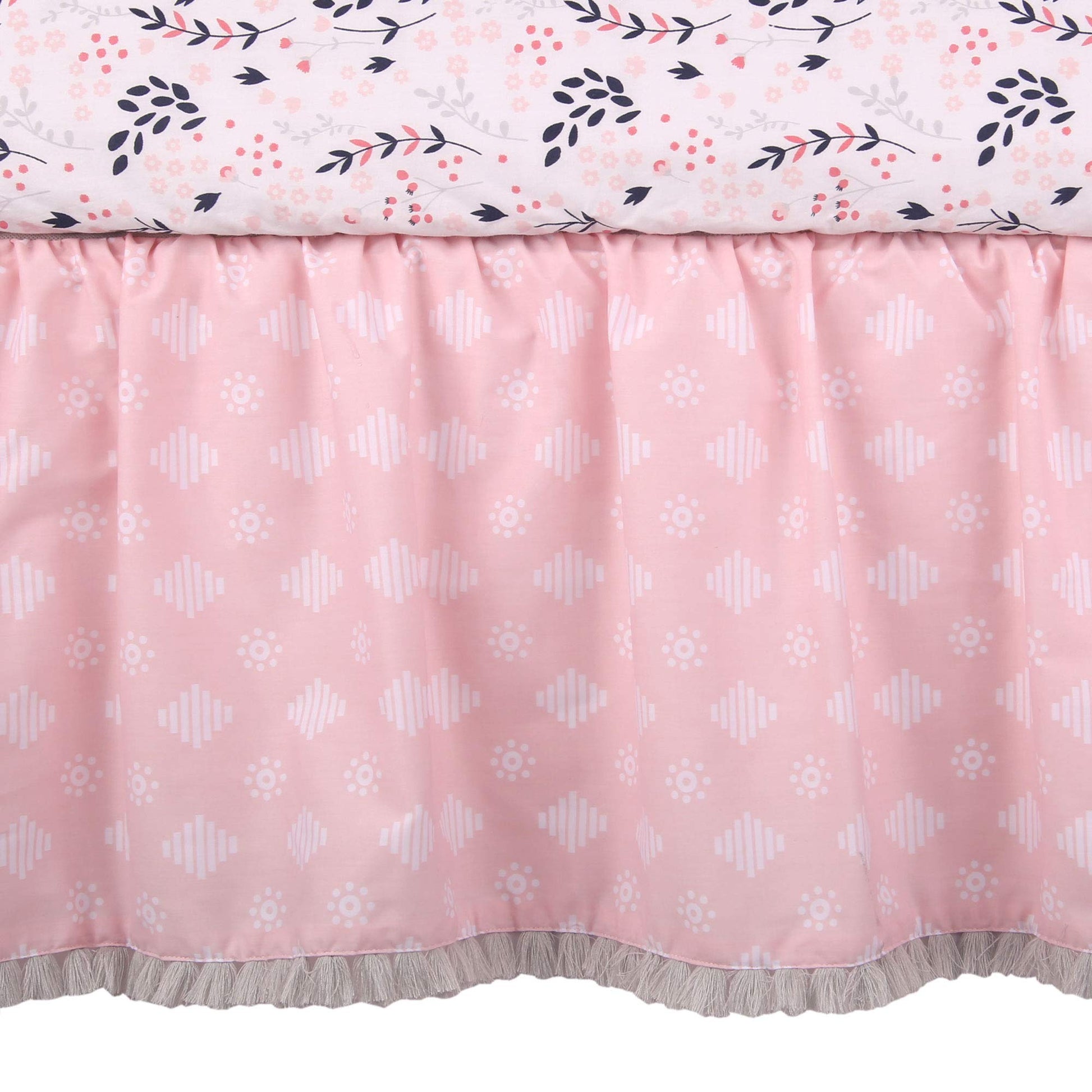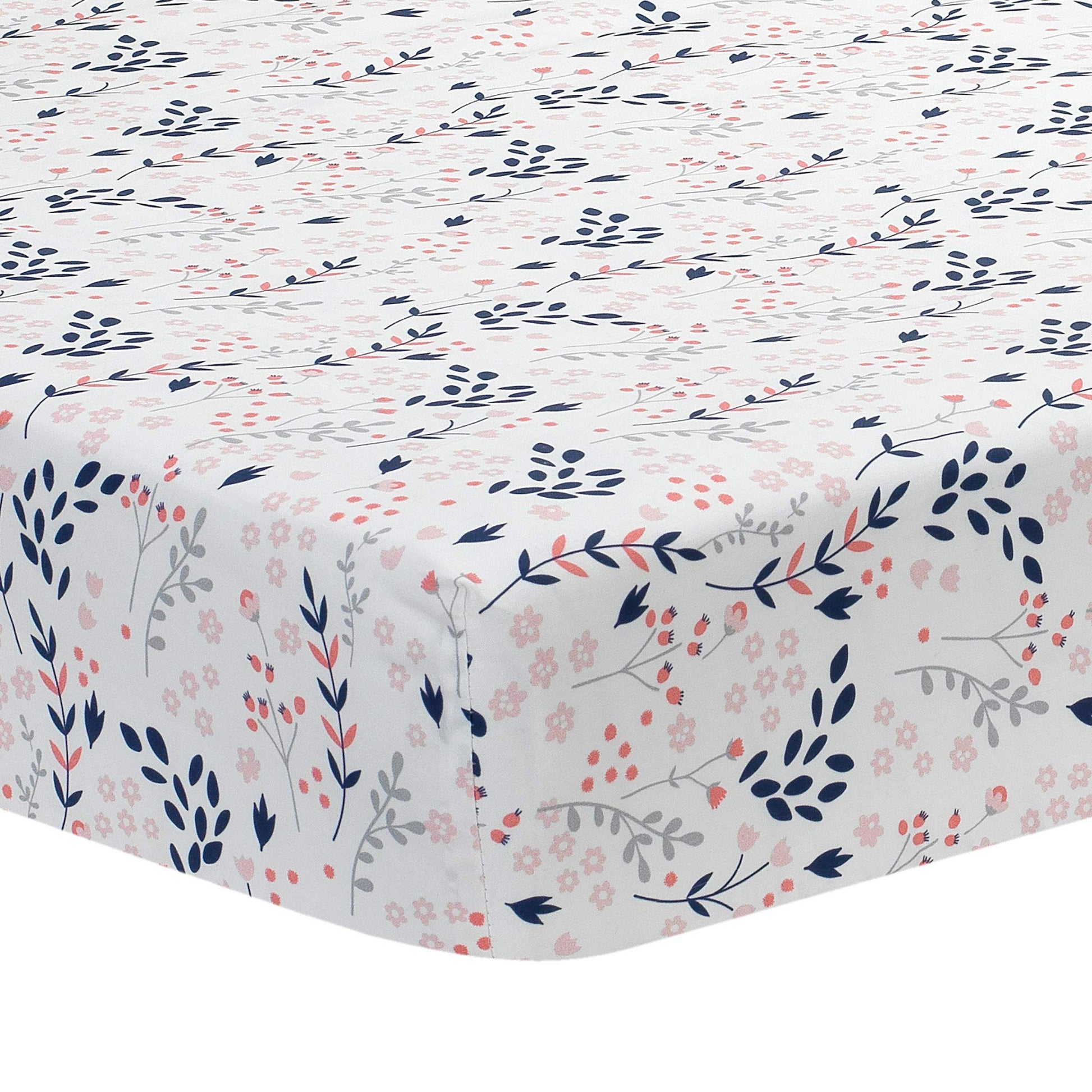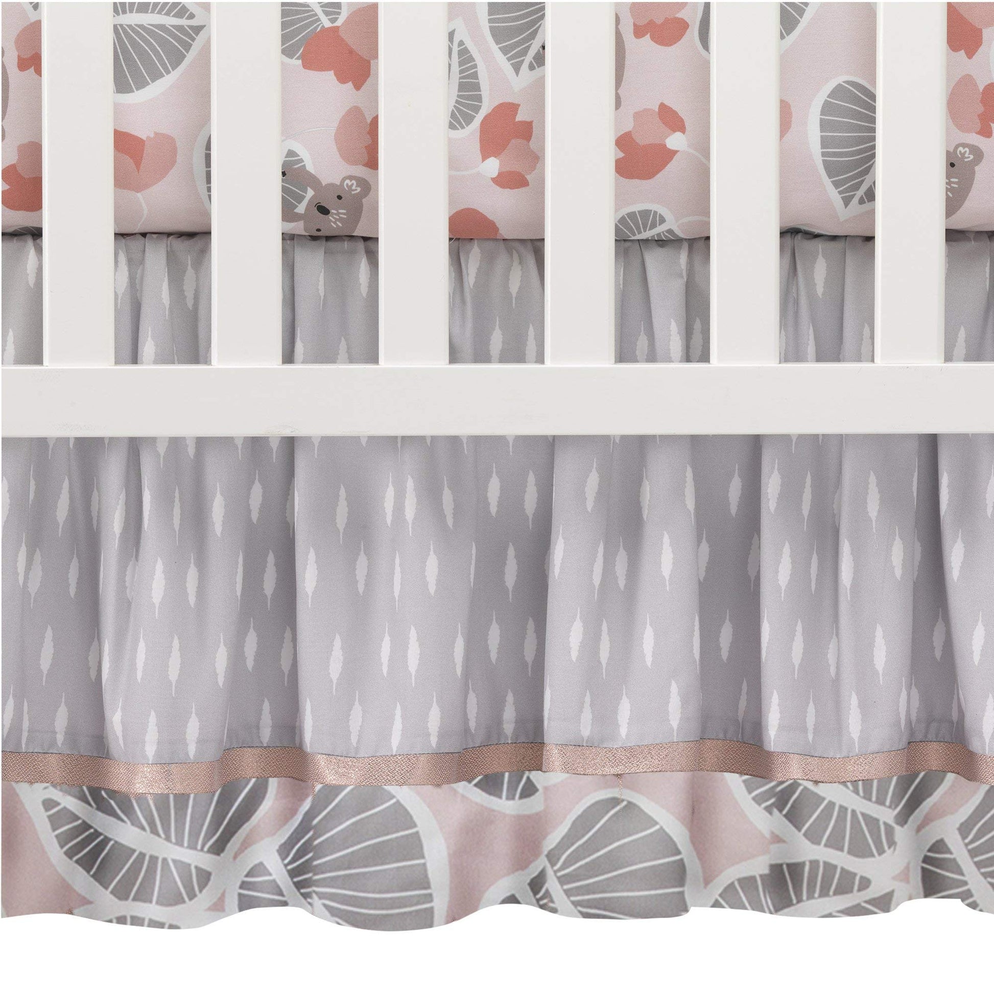 - An embroidered leaf design is featured on the front of the crib skirt and the cotton fitted crib sheet features sweet watercolor forest animals