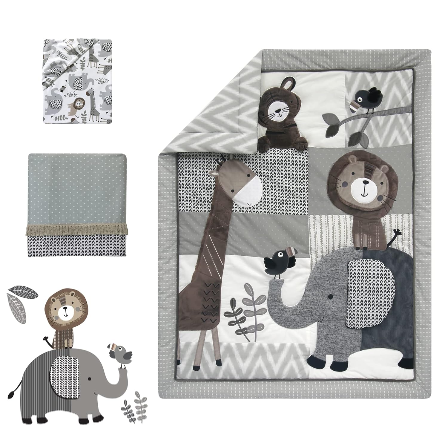 Lambs & Ivy Urban Jungle 4-Piece Crib Bedding Set - Gray, Brown, White, Jungle