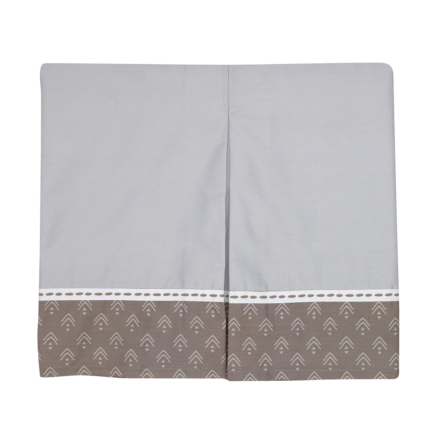 This Woodland Forest 5-piece nursery baby crib bedding set includes one highly detailed quilt, two 100% cotton fitted crib sheets, one crib skirt (dust ruffle) and a full set of wall decals/appliques. This woodland designed quilt features a friendly gray corduroy bear with diamond shaped embroideries and a cute little walnut colored squirrel marching happily on his back. A tan colored mischievous minky fox sits close by and has a 3 dimensional tail with embroidered details. All the while a wise owl with dimensional herringbone wings stands proudly on an appliqued branch with embroidered leaves. The back of the quilt is an on trend gray herringbone print. One of the 100% cotton fitted crib sheets is a trendy two-toned chevron print and the other 100% cotton fitted crib sheet is an adorable animal print with our favorite woodland critters. The crib skirt is in a warm gray, has two pleats, the bottom is a walnut colored arrow print and a white twill tape separates the two fabrics. Complete this whimsical woodland theme with our easy on easy off wall decals. The tree branches and leaves come in separate pieces so you can arrange the leaves any way you wish. Included are Oscar, our friendly bear along with the wise owl, mischievous fox and spunky squirrel.