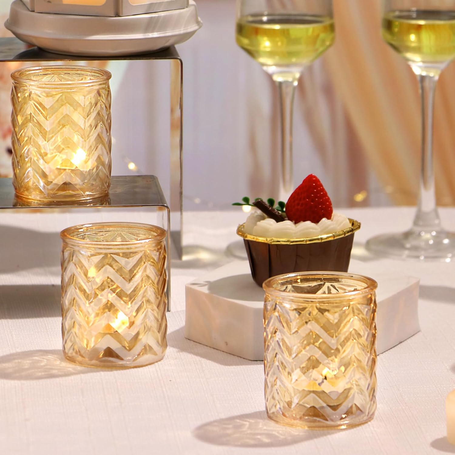 - Elegant Votive Candle Holders Bulk: Elevate the ambiance of your event with these exquisitely designed round votive candle holders, adorned with intricate wave relief patterns. Their captivating design adds the perfect finishing touch to your party table decorations.