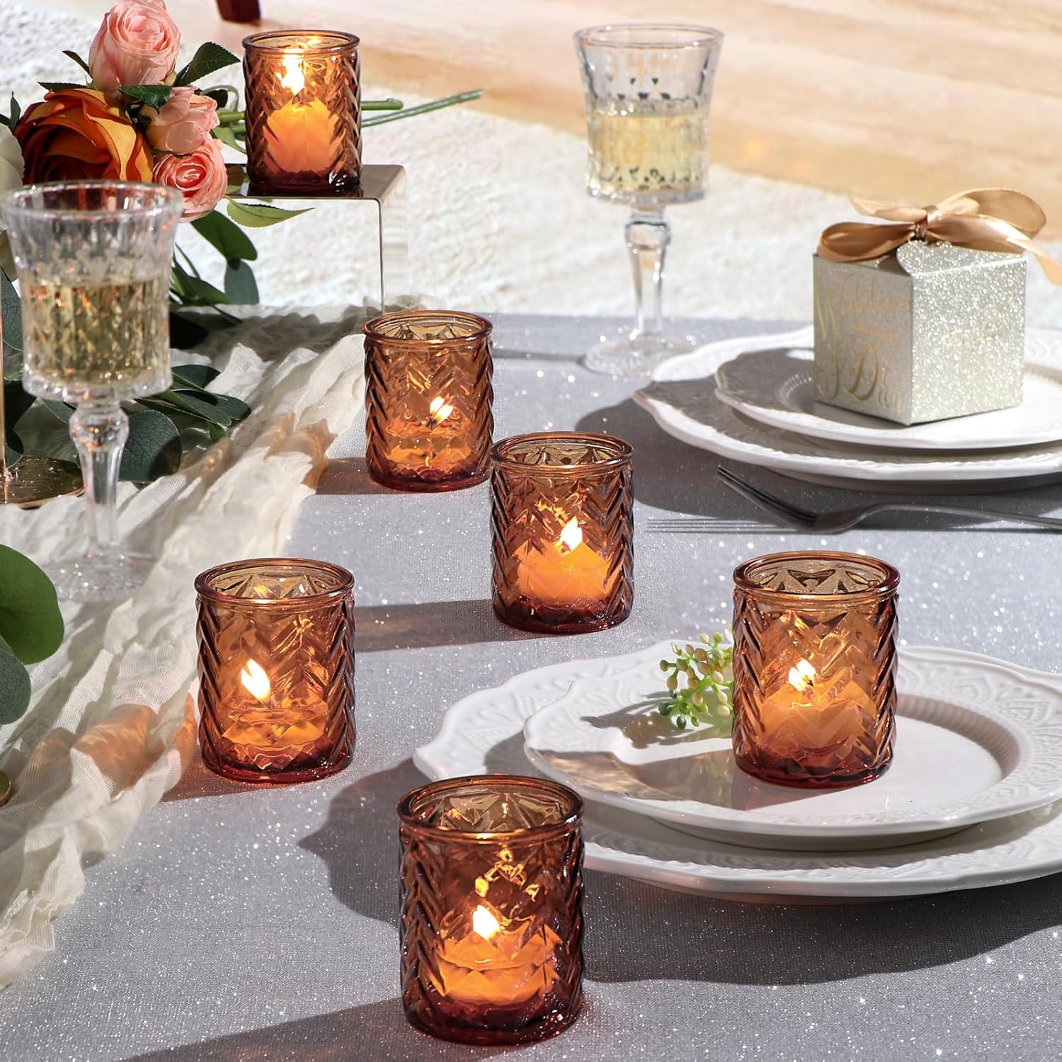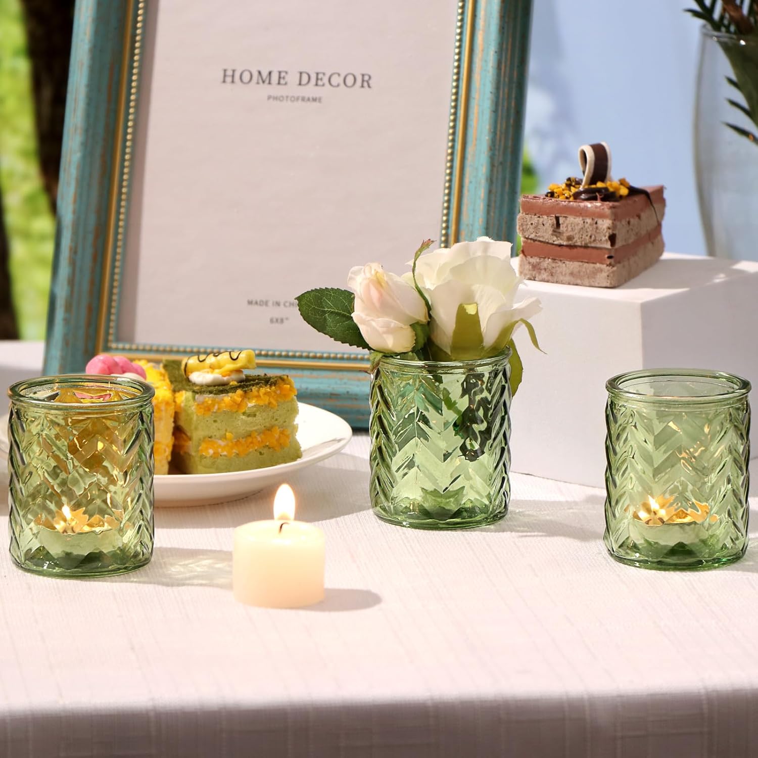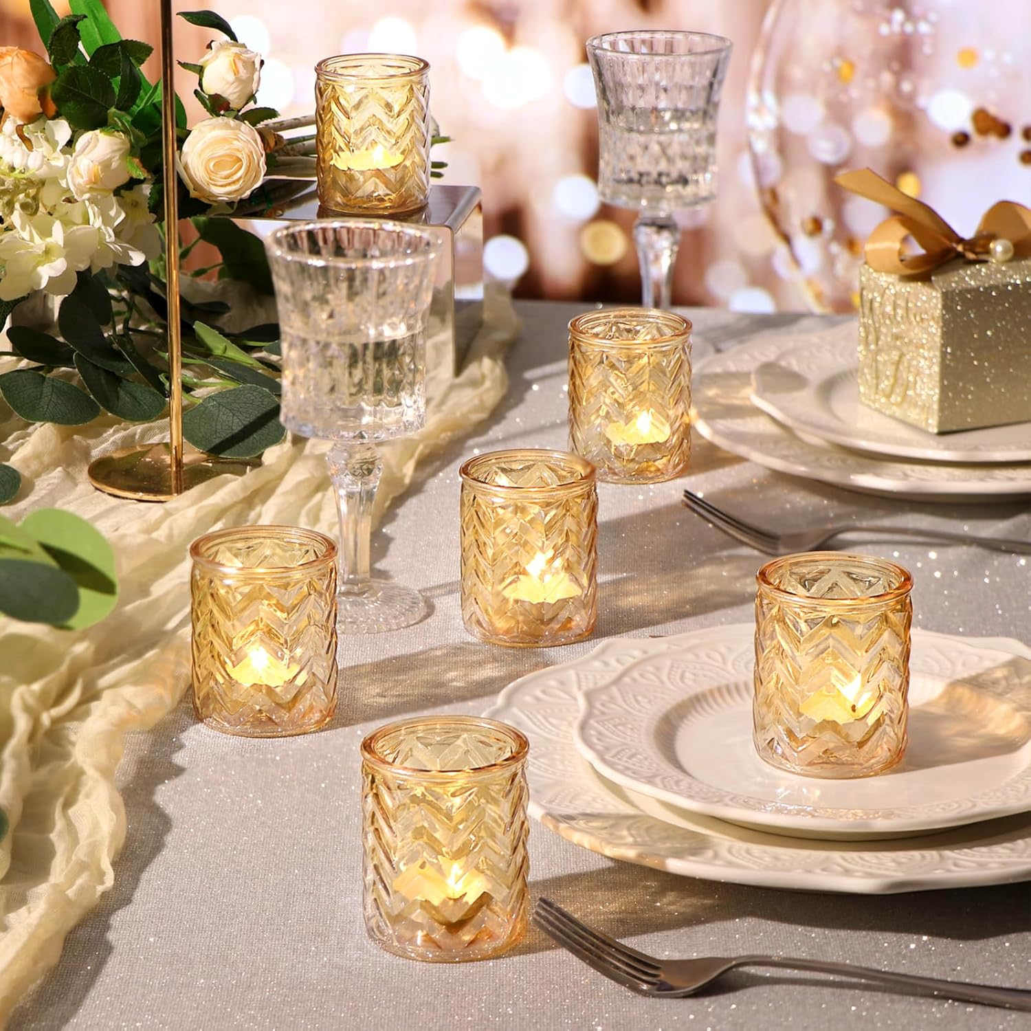 - Applicable Candles: Each set includes 12 pcs tealight candle holders, measuring 2 inches in diameter (Cal) and 2.65 inches in height. Place tea candles, small votives, or LED tealights (diameter better less than 1.6") in these glass candle holders to cast a beautiful, warm glow that enhances the dining experience.