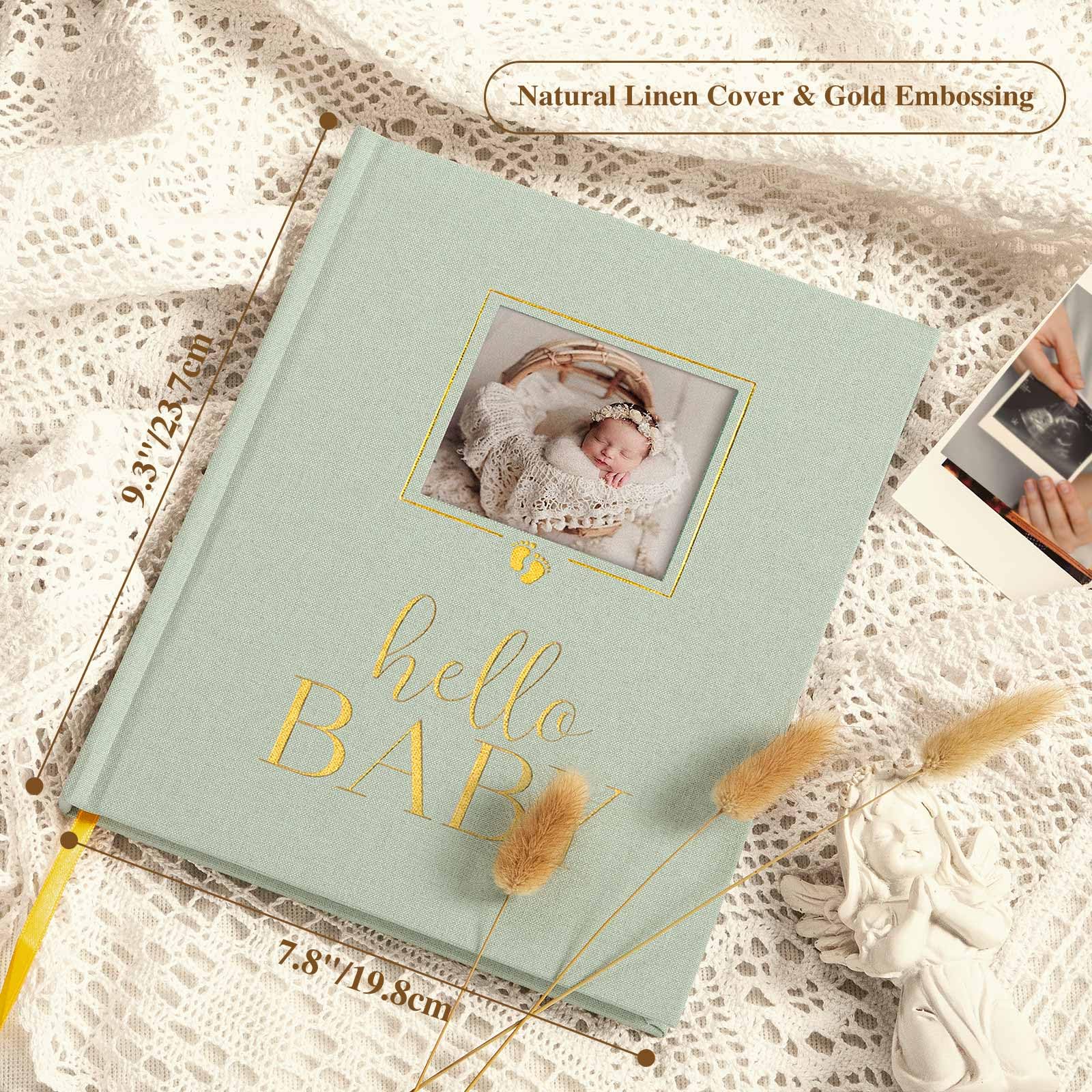- BABY JOURNAL MADE TO LAST: Our linen baby book keepsake features gold foil cover, 120gsm paper, and lay-flat, ensuring seamless writing and lasting memories. The first 5 year baby photo album measures 9.3"x7.8" (23.7 x 19.8 cm), easy to carry and store