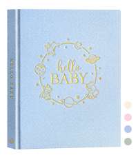 The 180° Lay Flat design and ribbon bookmark ensure effortless writing and viewing. This baby memory book features 154 pages of thick acid-free paper.