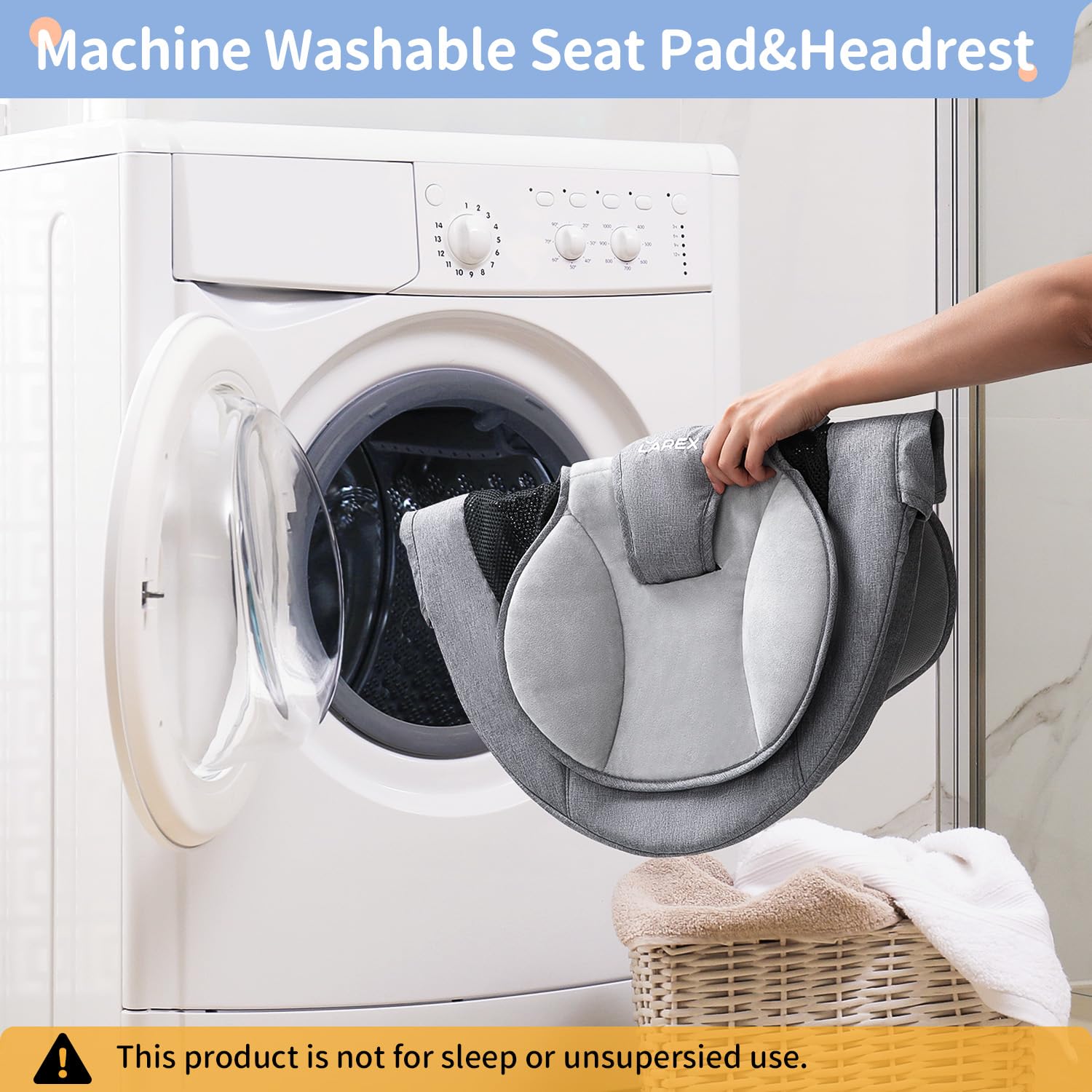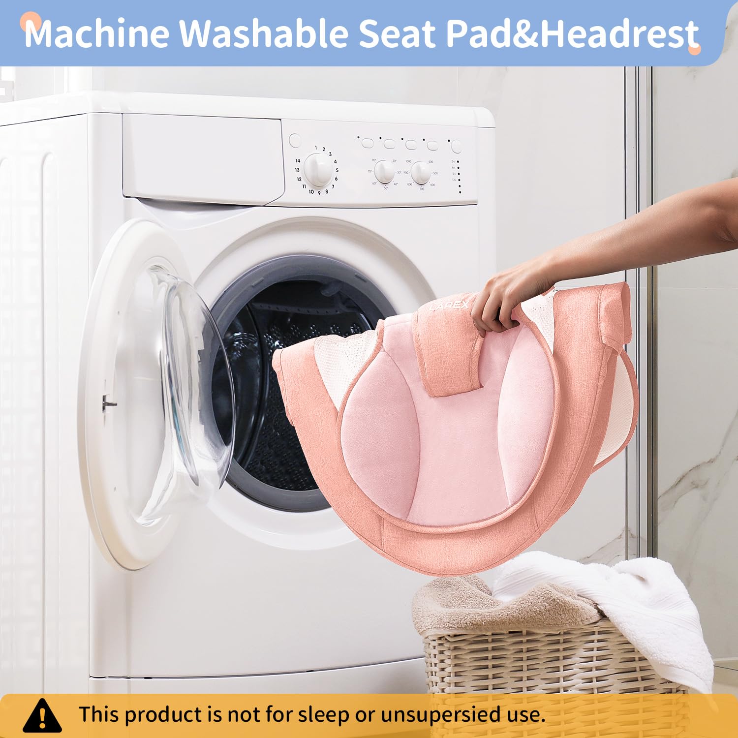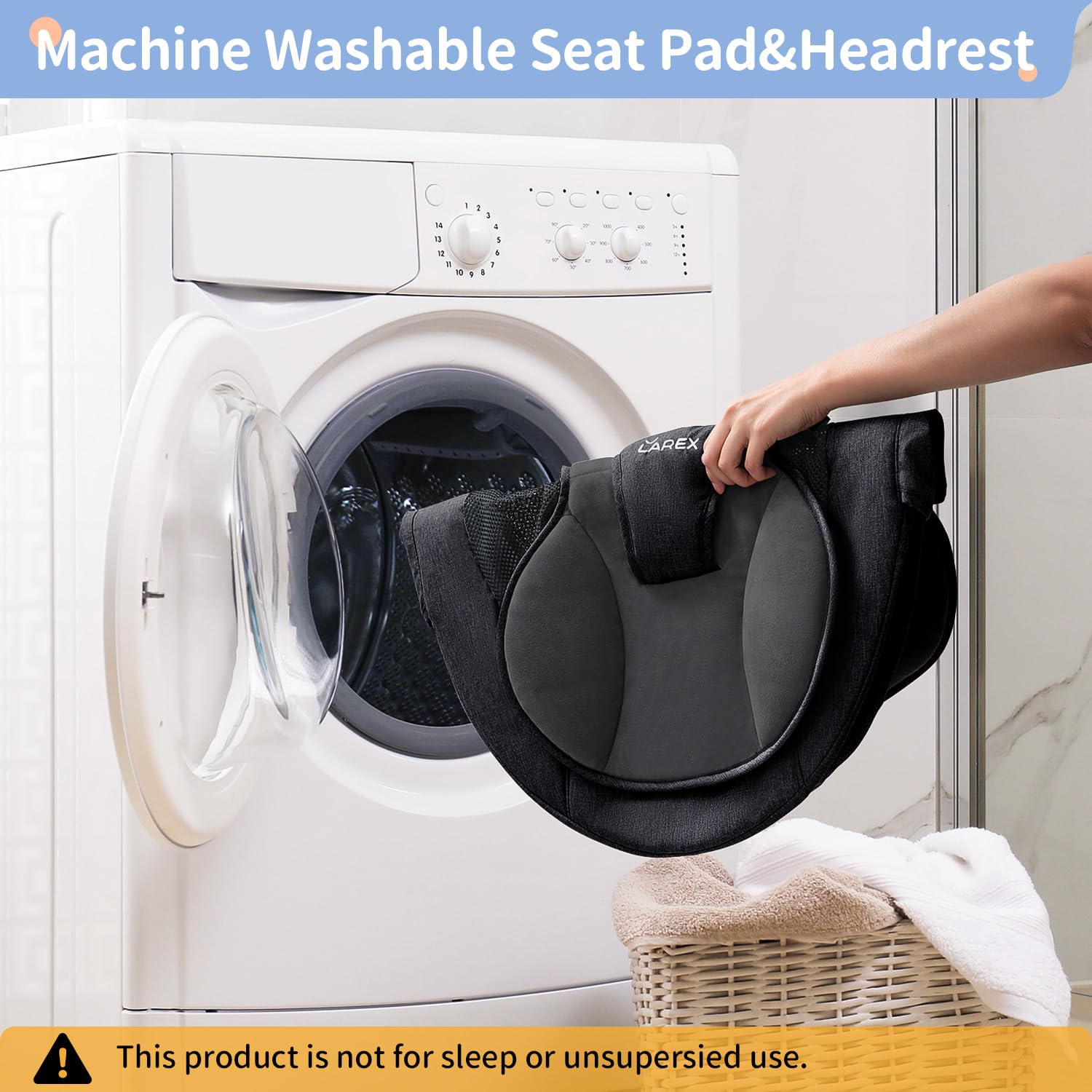 - Secure & Comfortable Seat Pad: The 3-point harness ensures safety, while the reversible plush seat pad and pillow keep baby cozy with a plush seat pad for winter and a breathable mesh pad for summer, all machine washable for easy cleaning.