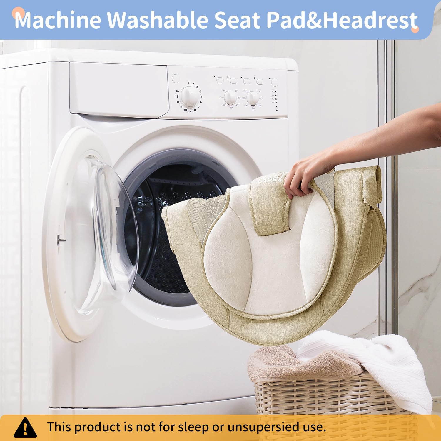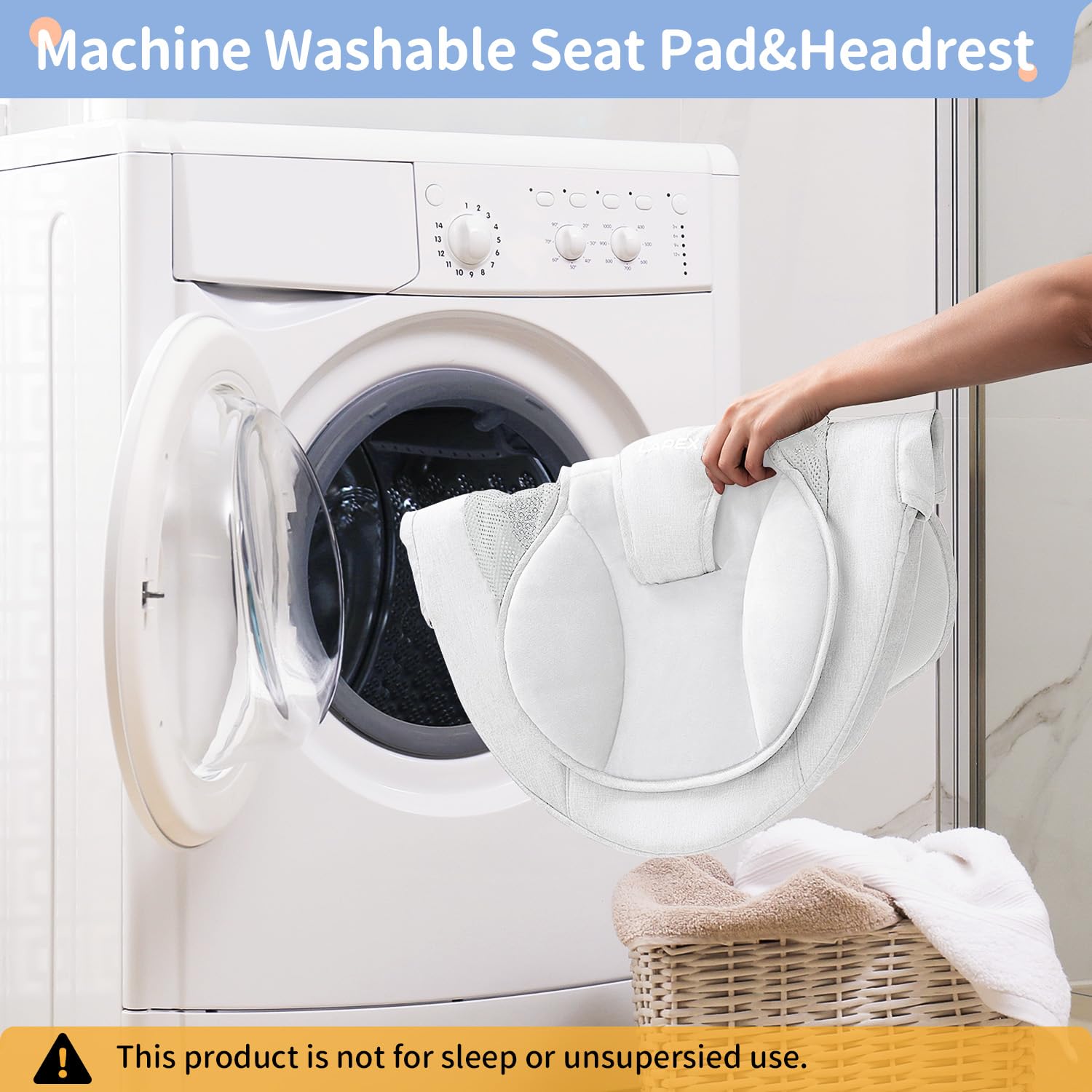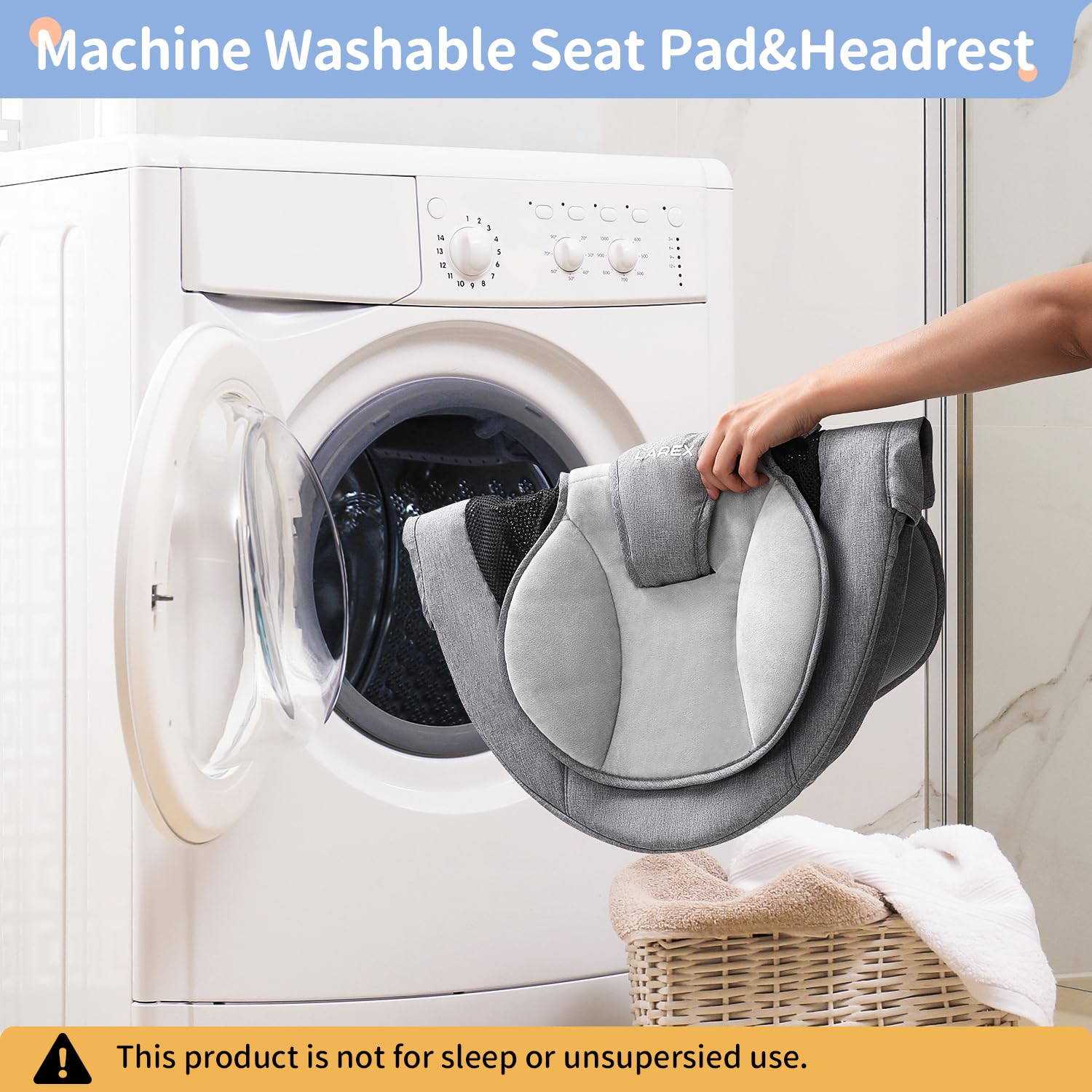 - Secure & Comfortable Seat Pad: The 3-point harness ensures safety, while the reversible plush seat pad and pillow keep baby cozy with a plush seat pad for winter and a breathable mesh pad for summer, all machine washable for easy cleaning.