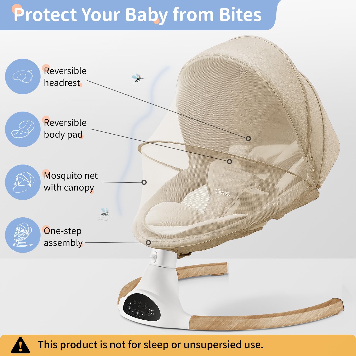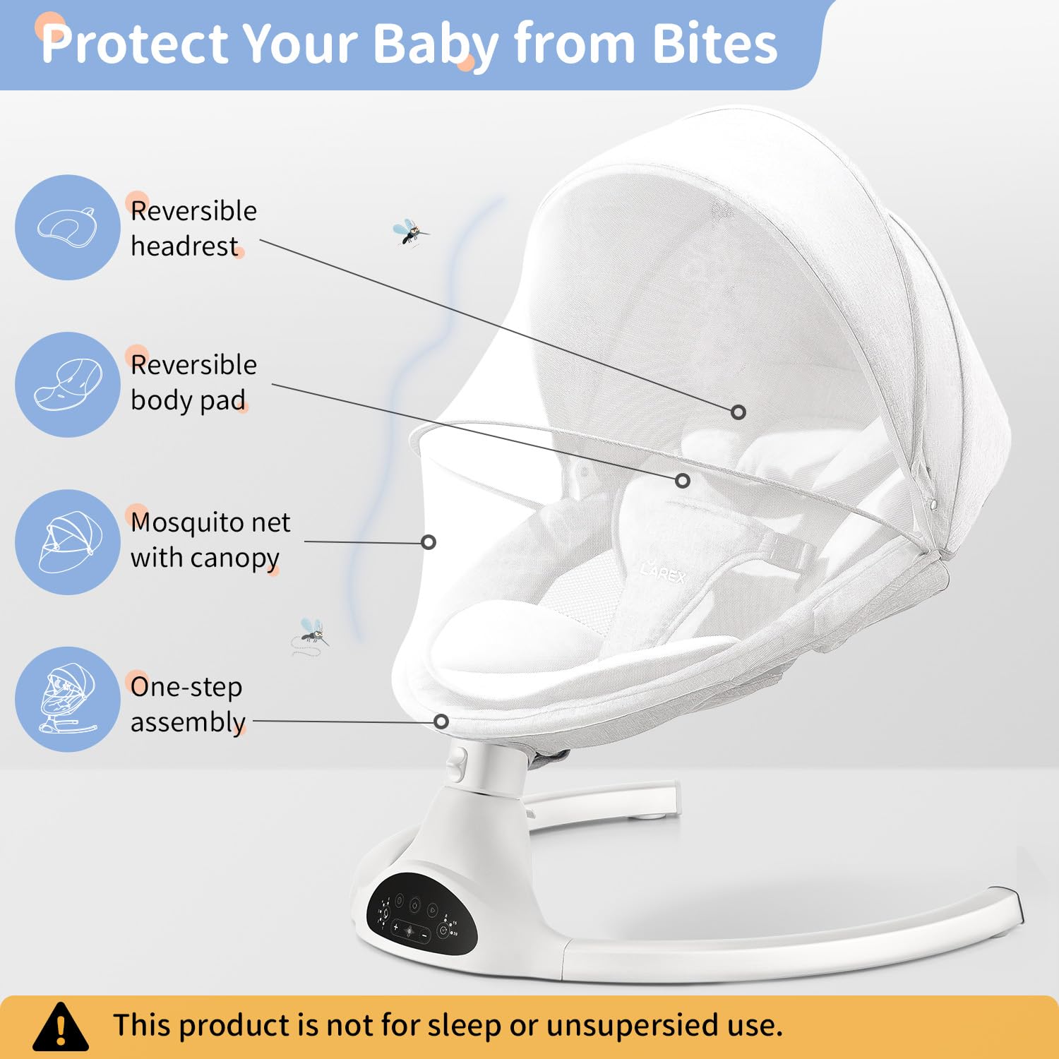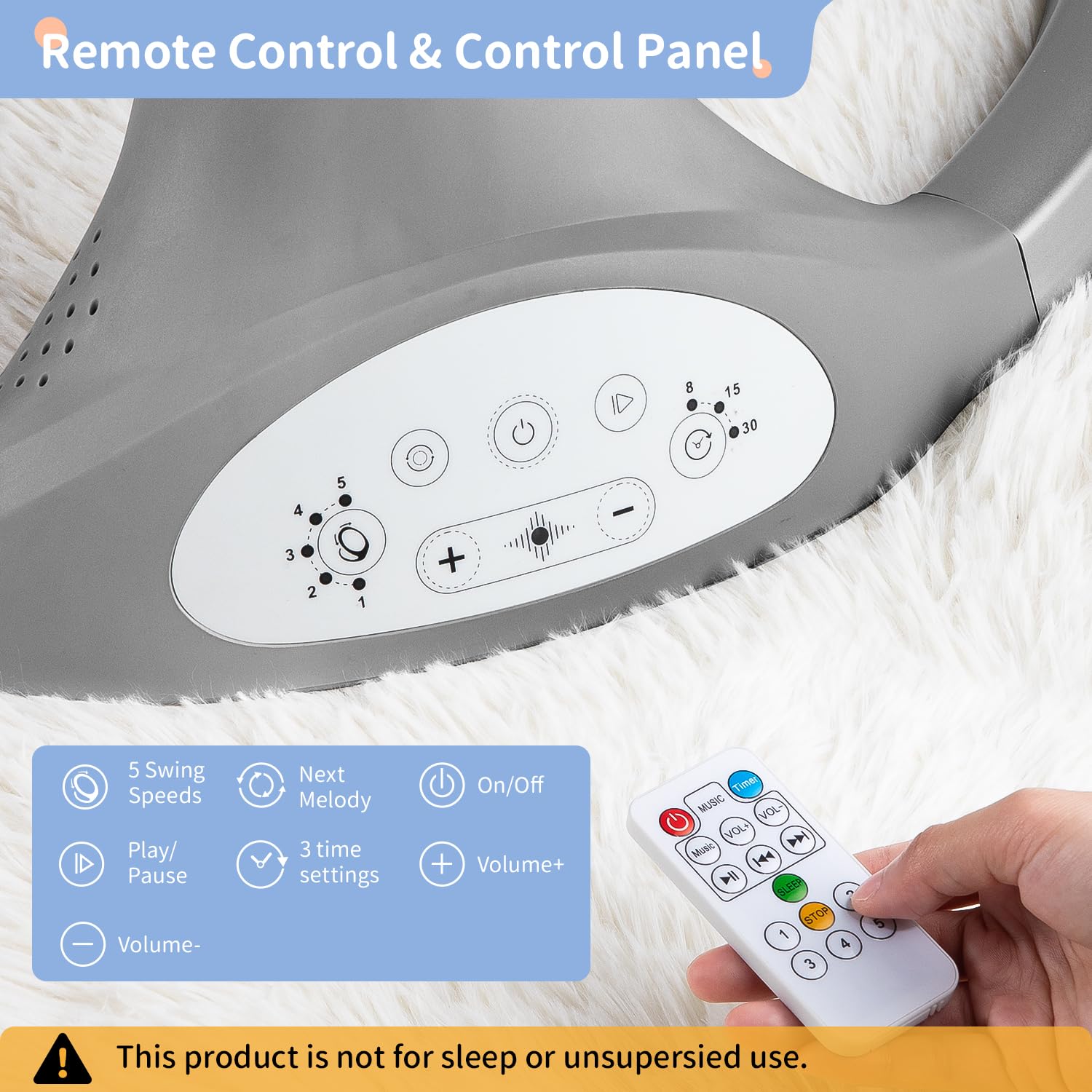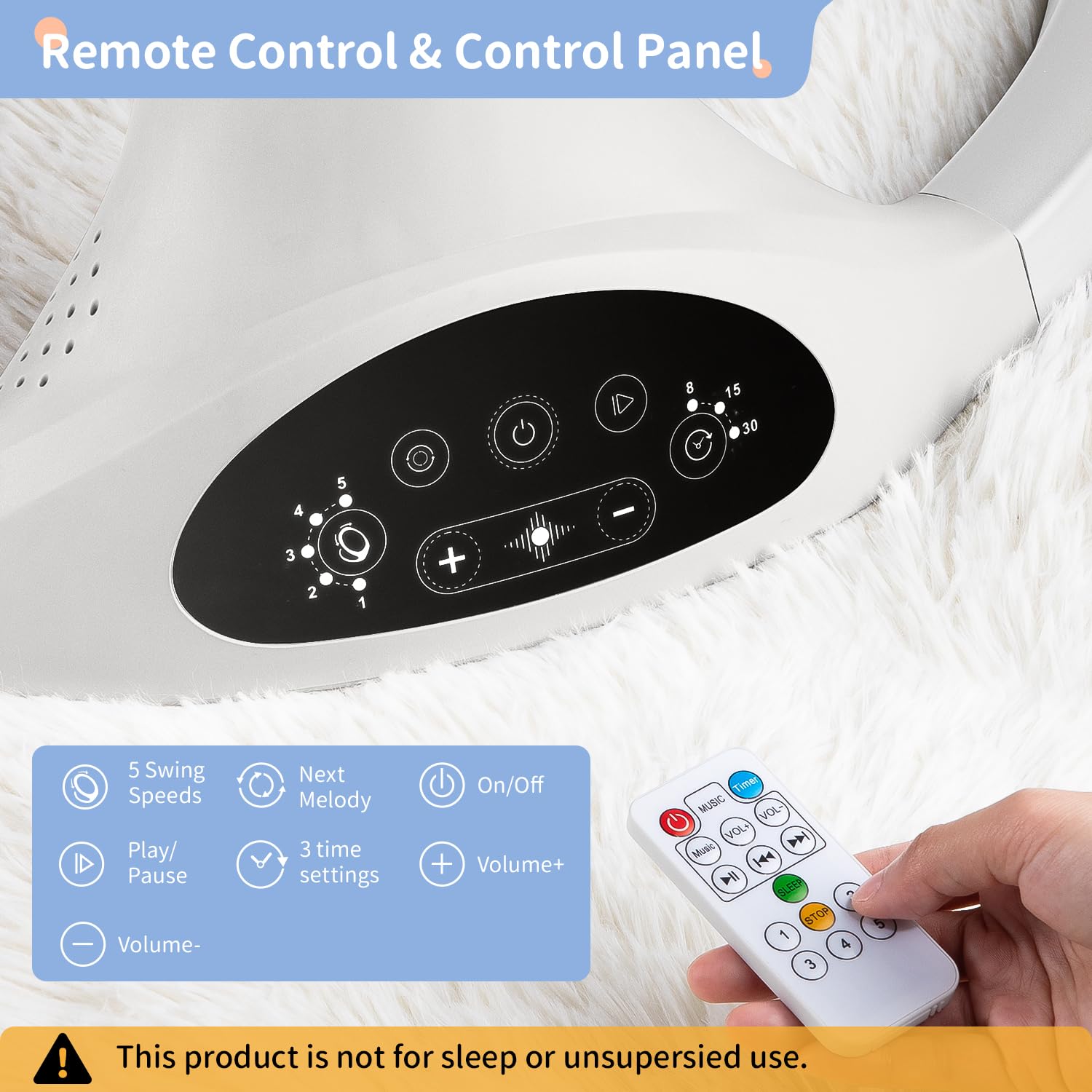 - Touch Panel & Remote Control: Easy operation with 2-way control, allowing parents to select the desired swing timer setting of 8, 15, or 30 minutes.