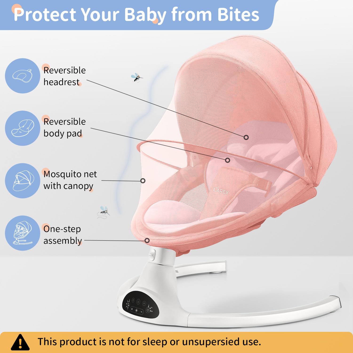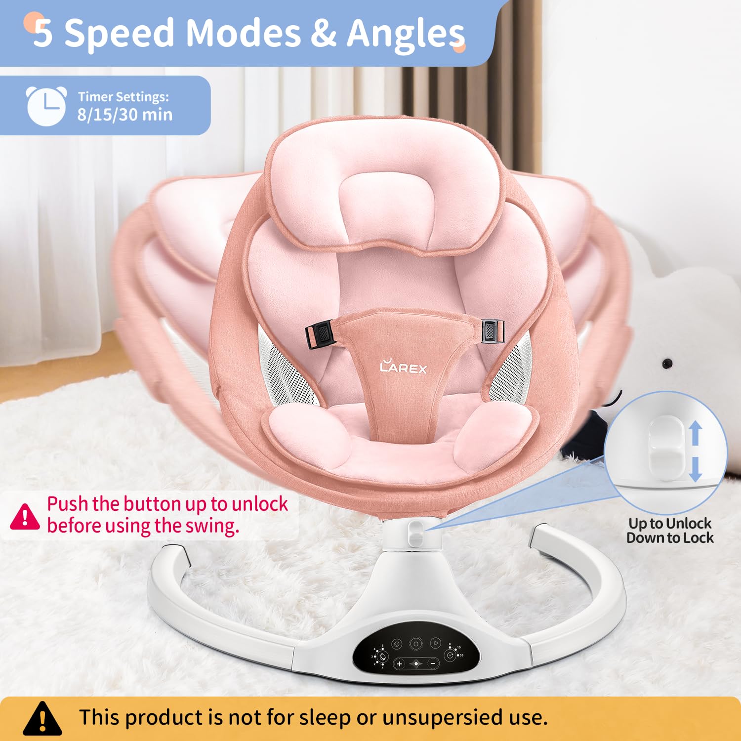 LAREX Baby Swing Infant Swing Electric Toddler Baby Rocker Portable for Newborn Boy Girl, 5 Sway Speeds with Remote Control, 10 Preset Melodies and Bluetooth, 0-6 Months Max 20 Lbs (Pink)