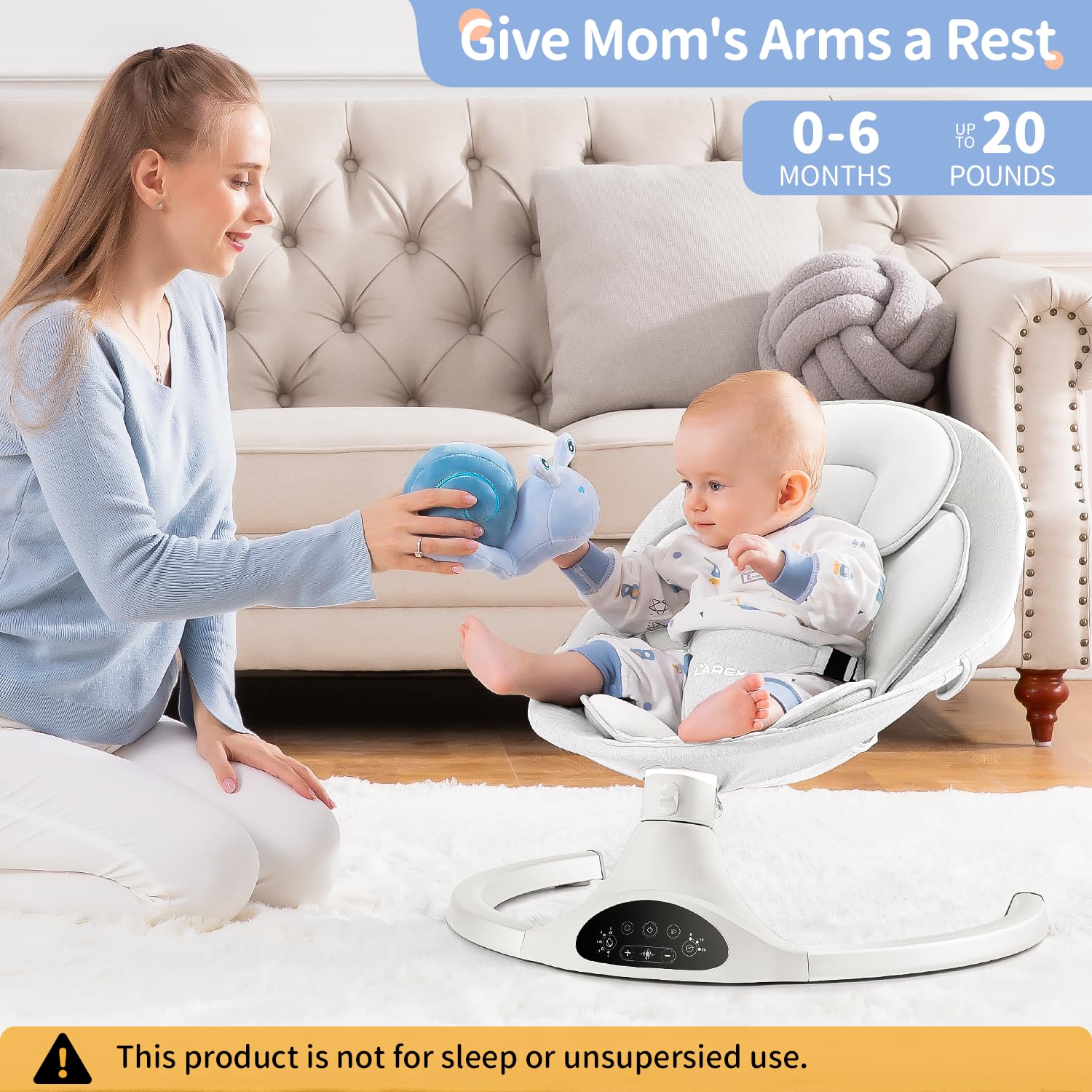 - 5 Swing Speeds: The gentle side-to-side motion simulates the feeling of being held by mom, with 5 speed settings to suit your baby’s needs while giving mom’s arms a rest.