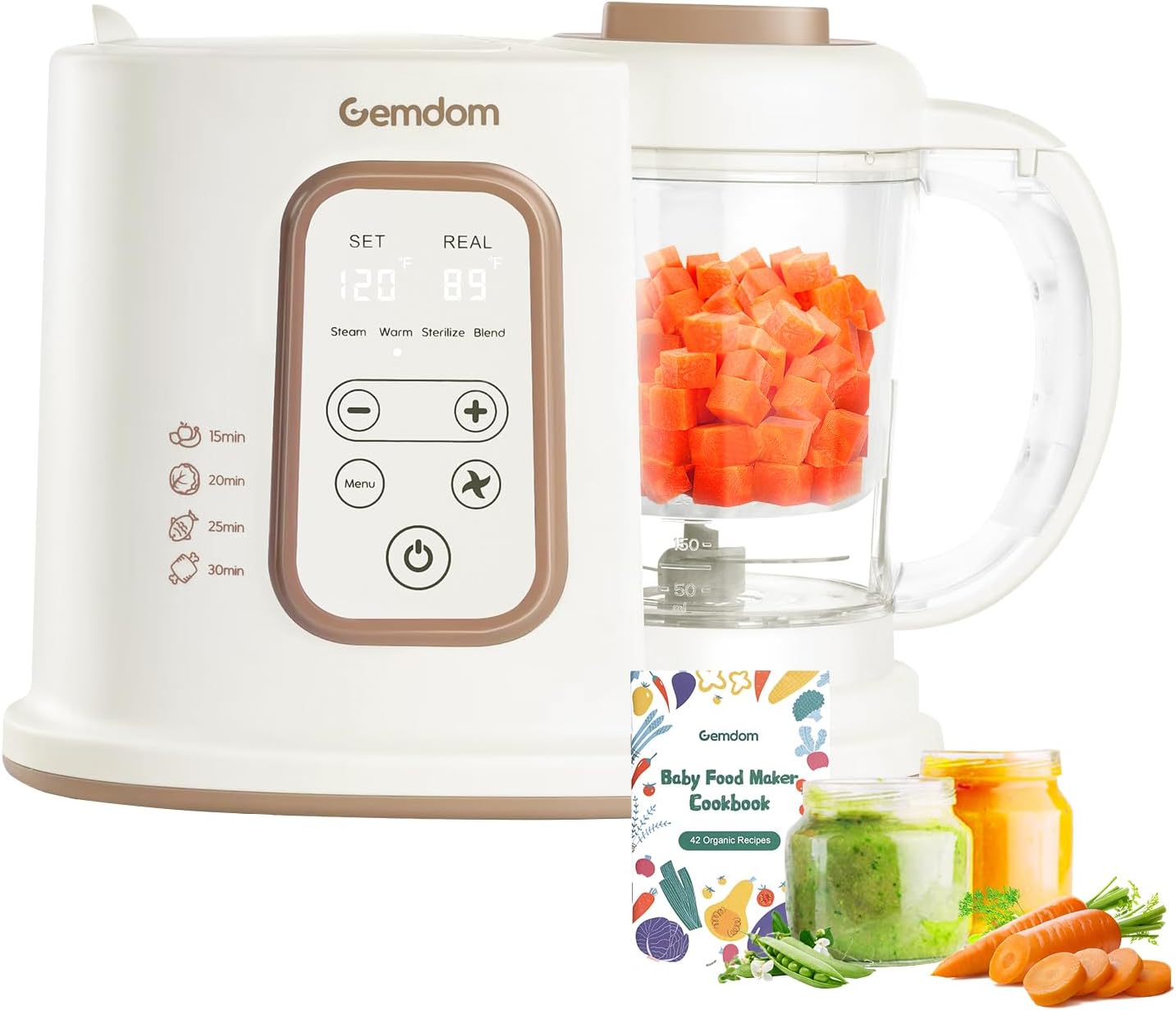 - 【Make Organic Baby Food at Home】Gemdom baby food processor cooks raw meat, chicken, fish, fruits or veggies to any stage baby food & toddler food in under 30 mins.