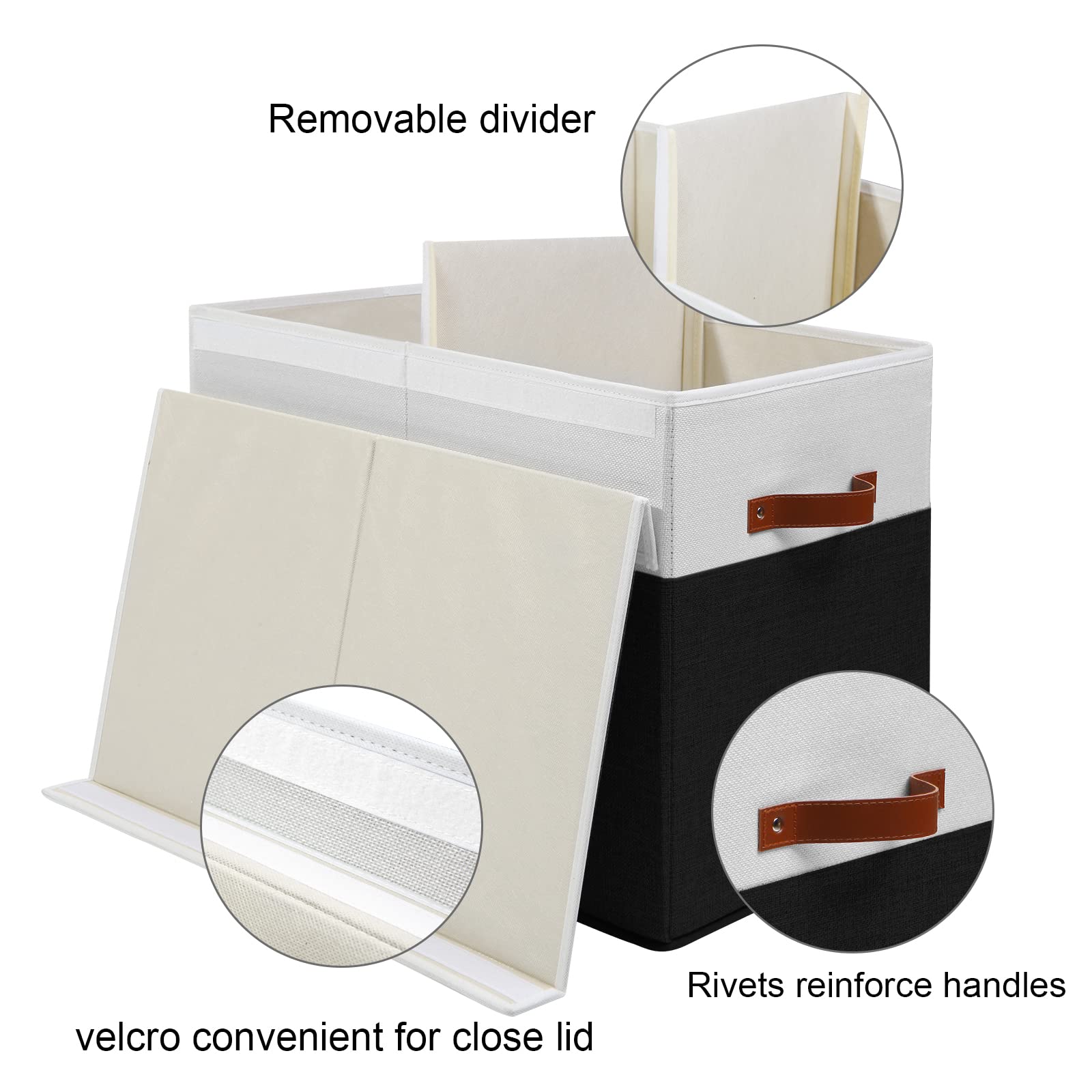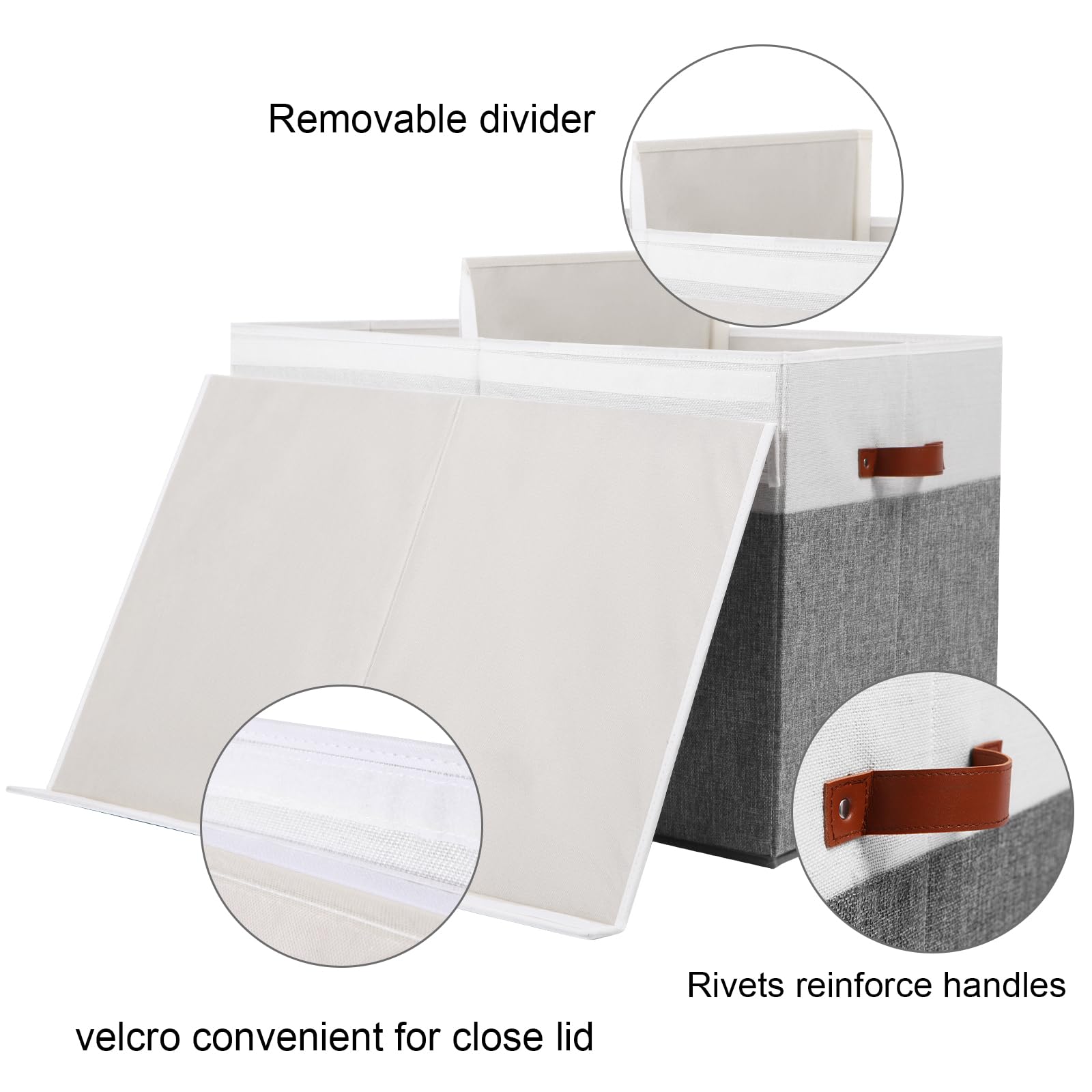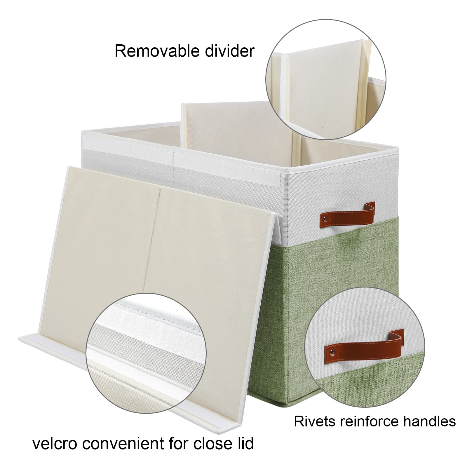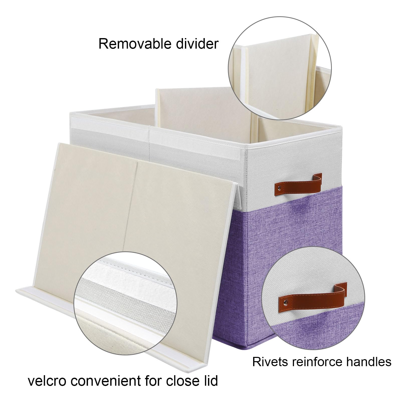 - DETACHABLE DIVIDER - The toy box have a removable divider board. You can attach it by velcro, which is great for organizing different items separately, you can detach the divider for store bigger things, like blankets, large toys, etc