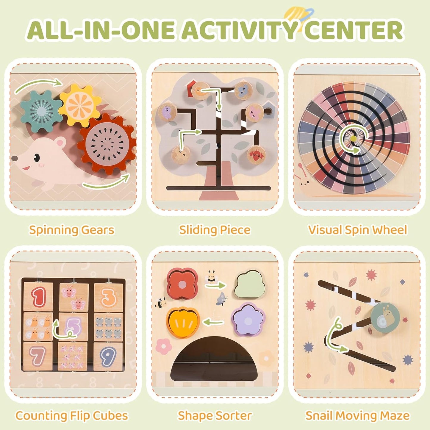 - 【Whimsical Zoo-themed】Step into the world of our cute zoo-themed baby wooden activity cube, where each feature feels alive and full of character, waiting to be explored by children. There are trees covered in birds, brightly colored flowers, life-like hedgehogs, bees, frogs, butterflies, and more waiting for your child to immerse themselves in zoo play.Each detail is carefully crafted to inspire curiosity, laughter, and learning, making our activity cube for 1 year old truly unique among toys.