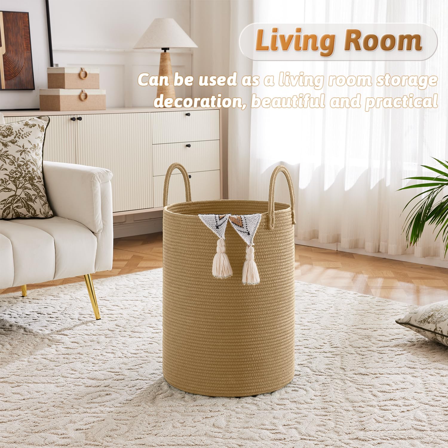 - 🎁【Natural Elegance】The stylish design of this cotton rope laundry basket adds a touch of elegant natural charm to your home. You can confidently place it anywhere in your house, as it will become an eye-catching decorative piece, making it a perfect gifts choice for home decor.
