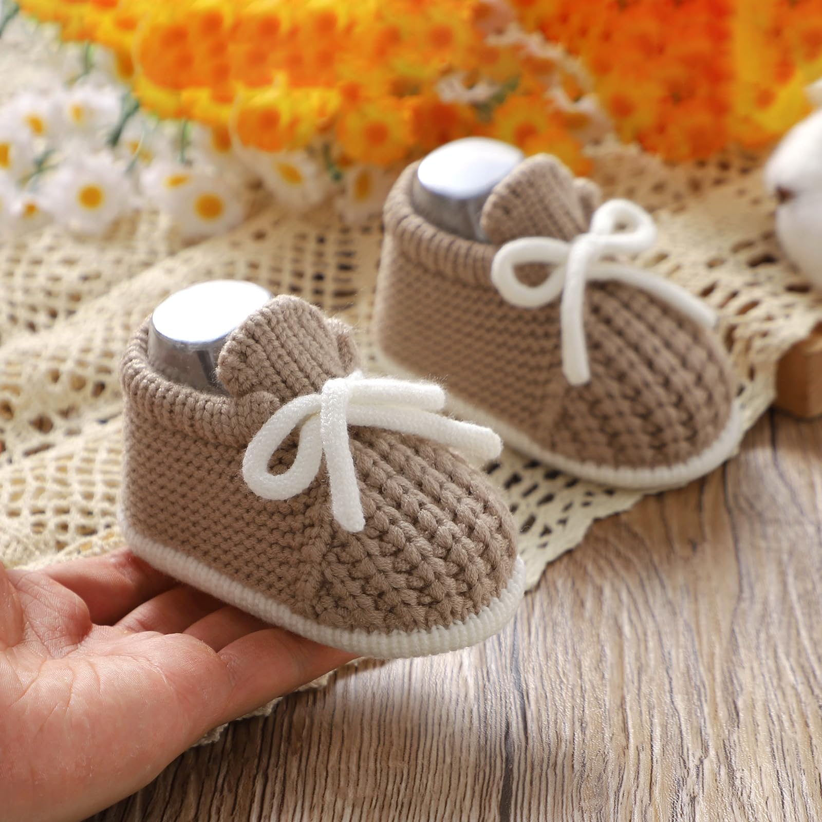 LAWKUL Baby Booties Knit Newborn Shoes Cozy First Walkers Infant Toddler Boots for Boy Girls 0-3 Months