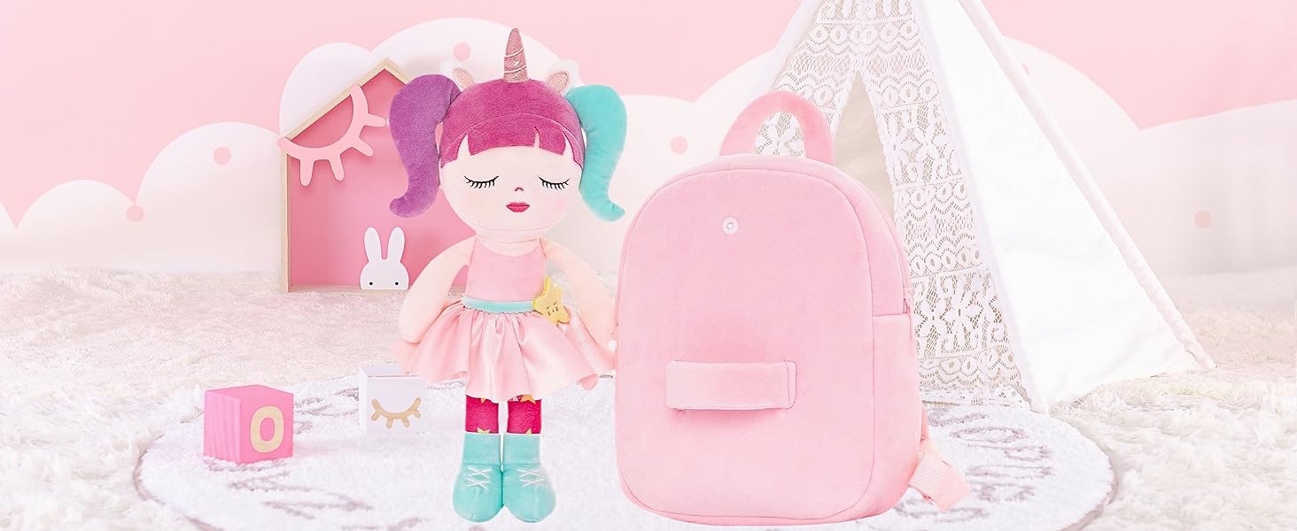 Lazada soft backpack this children's backpack is the perfect choice for a child's first birthday gift, with a detachable doll that makes her feel special at the birthday party.