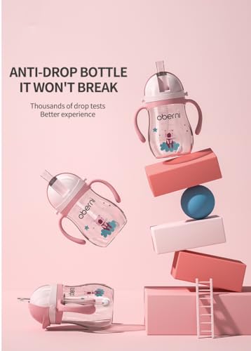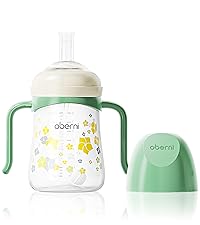 - ★Easy to Clean—All parts of the Oberni wide-neck Baby sippy cup are removable. You can effortlessly disassemble and assemble the handle, weighted straw, and Spout and sterilize and clean them easily.