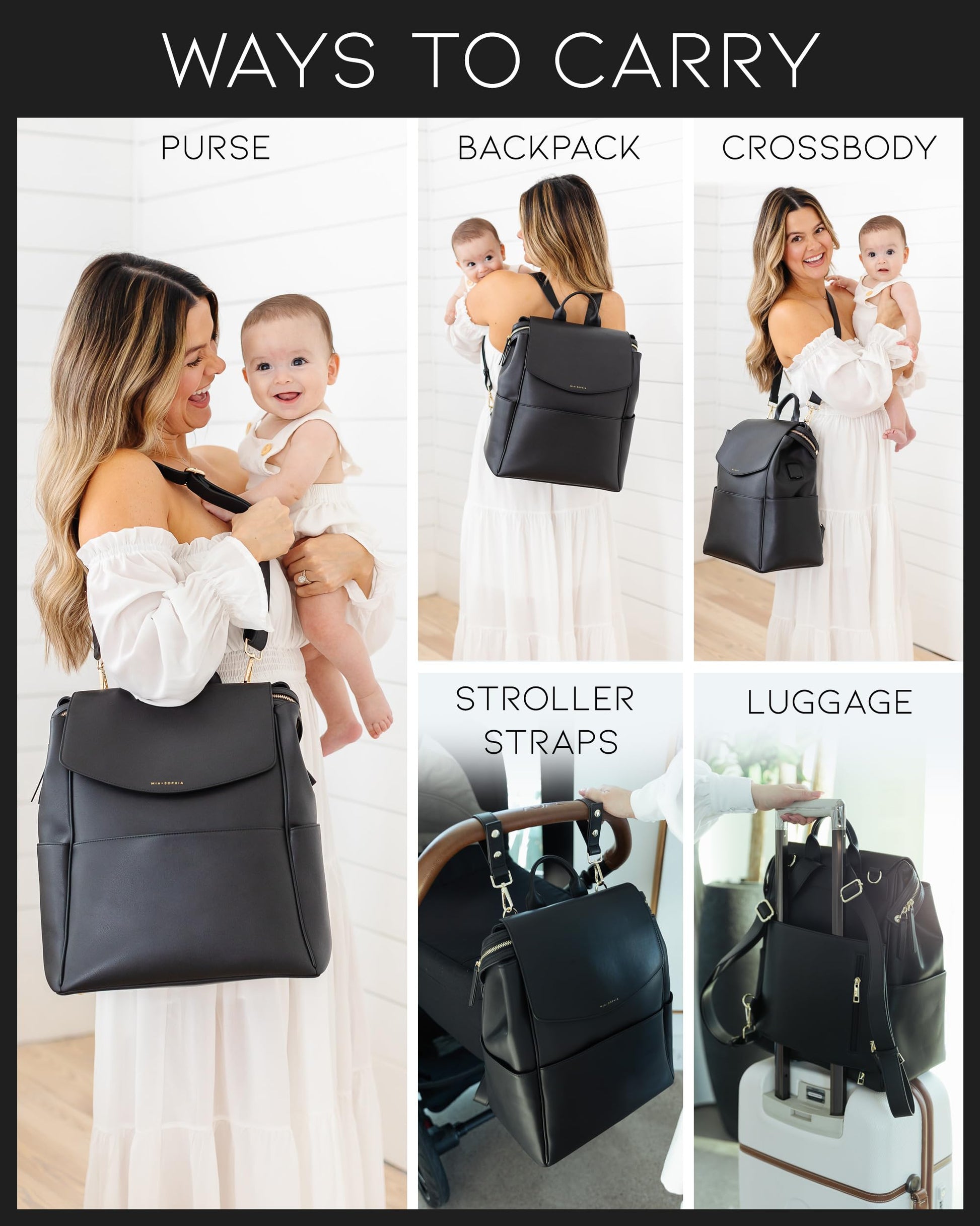 - Style & Function Combined - Designed for modern parents, this luxury diaper bag combines a sleek designer diaper bag look with everyday practicality. Includes a matching changing pad, an insulated bottle holder, two stroller straps, and an adjustable shoulder strap—wear it as a backpack, crossbody, or purse to suit any occasion.