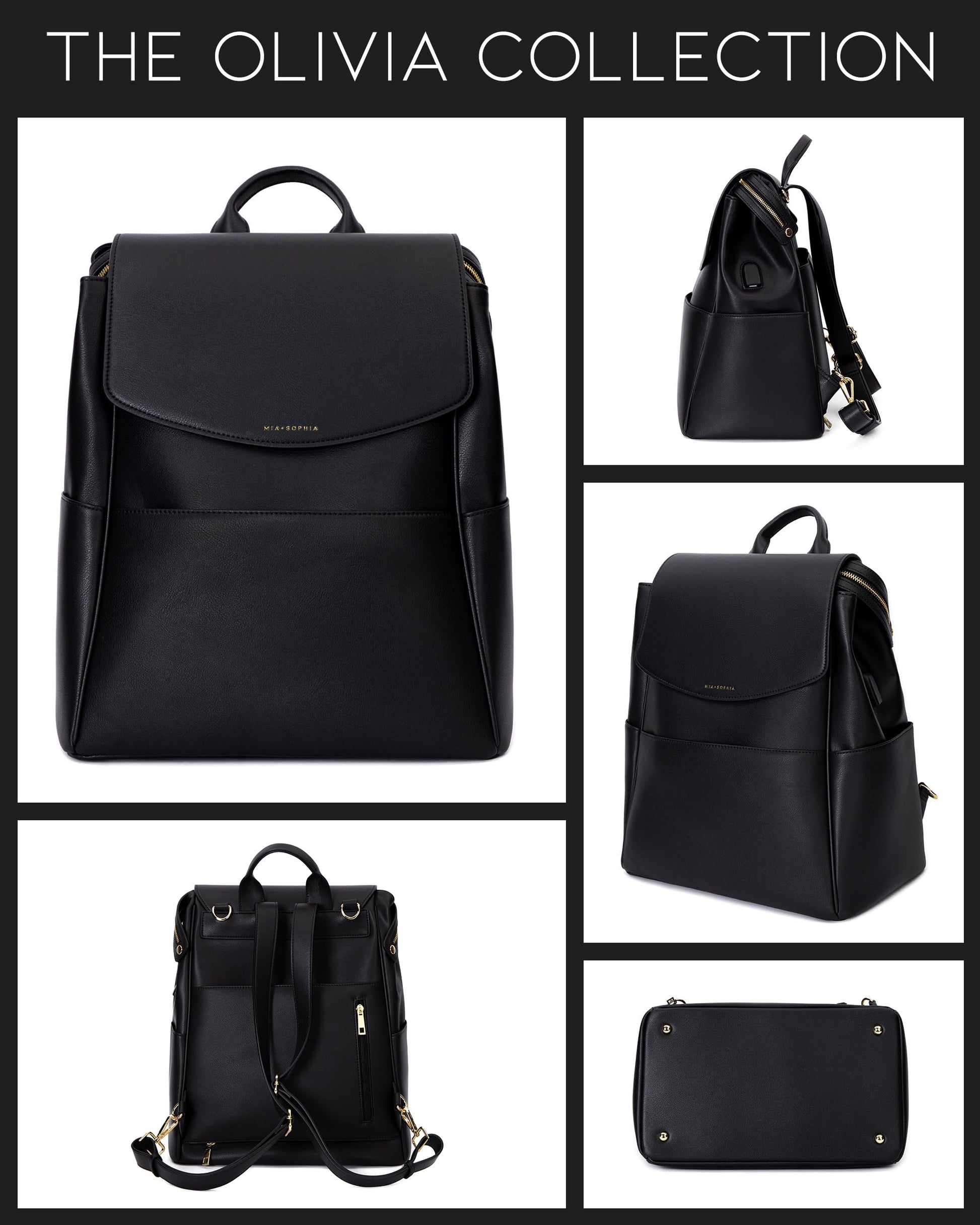 Leather Diaper Bag Backpack with USB Charging port, Changing Pad, Stroller Straps, and Bottle Holder (Brown Olivia)