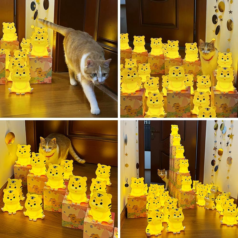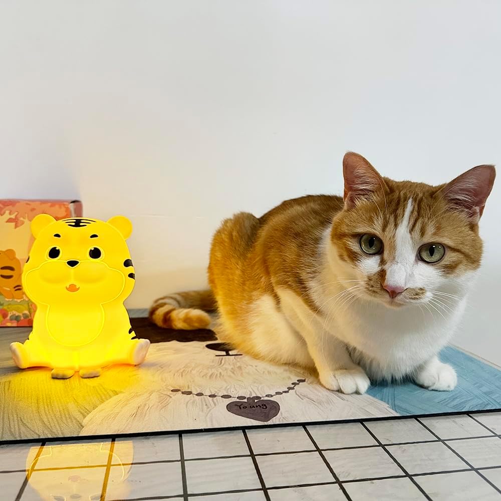 LED Night Light, Cute Tiger Touch Control Soft Silicone Portable Bedroom Lamp, Brightness Adjustable, Non-Flickering Eye-Caring Warm Light, Type-C USB Rechargeable, Timing Function