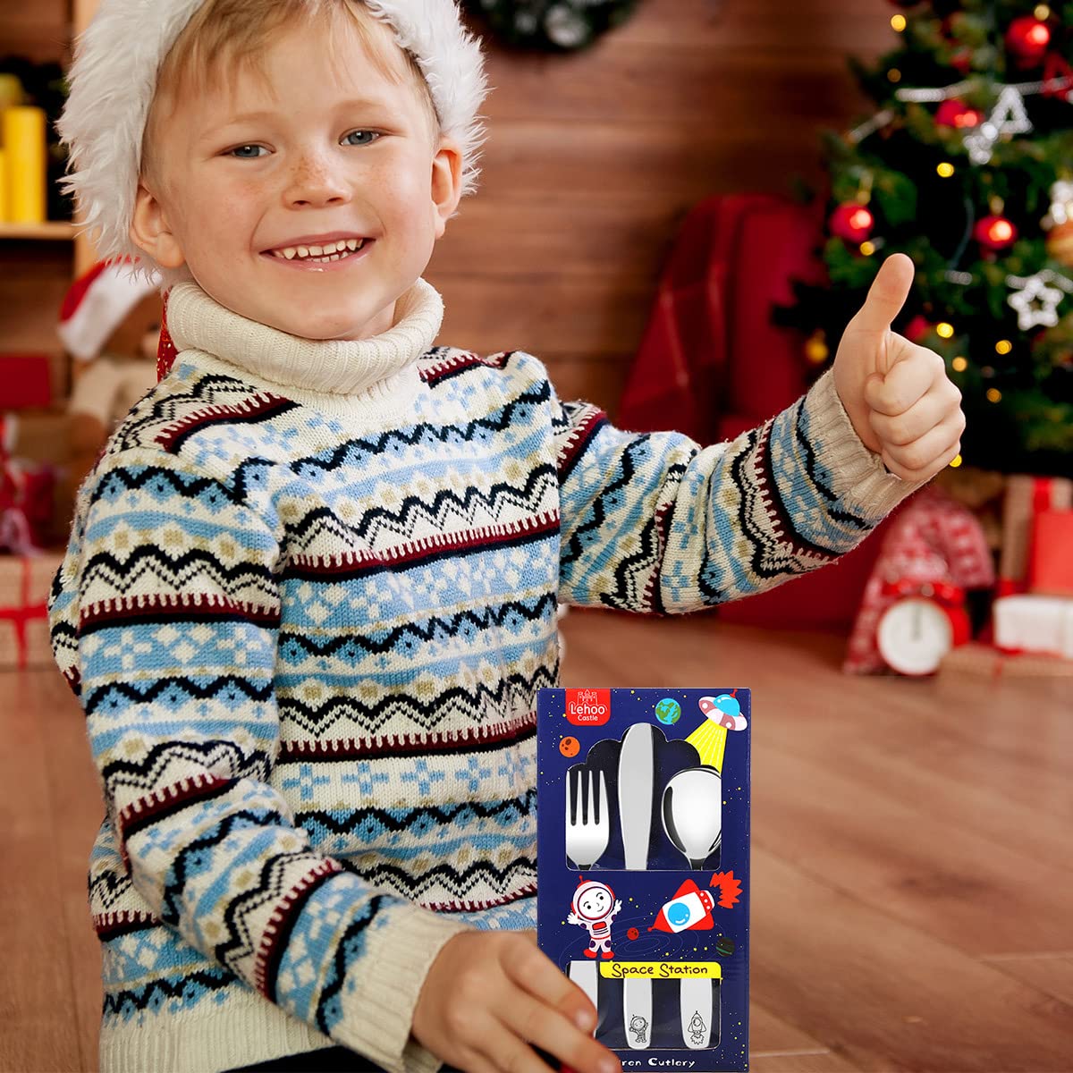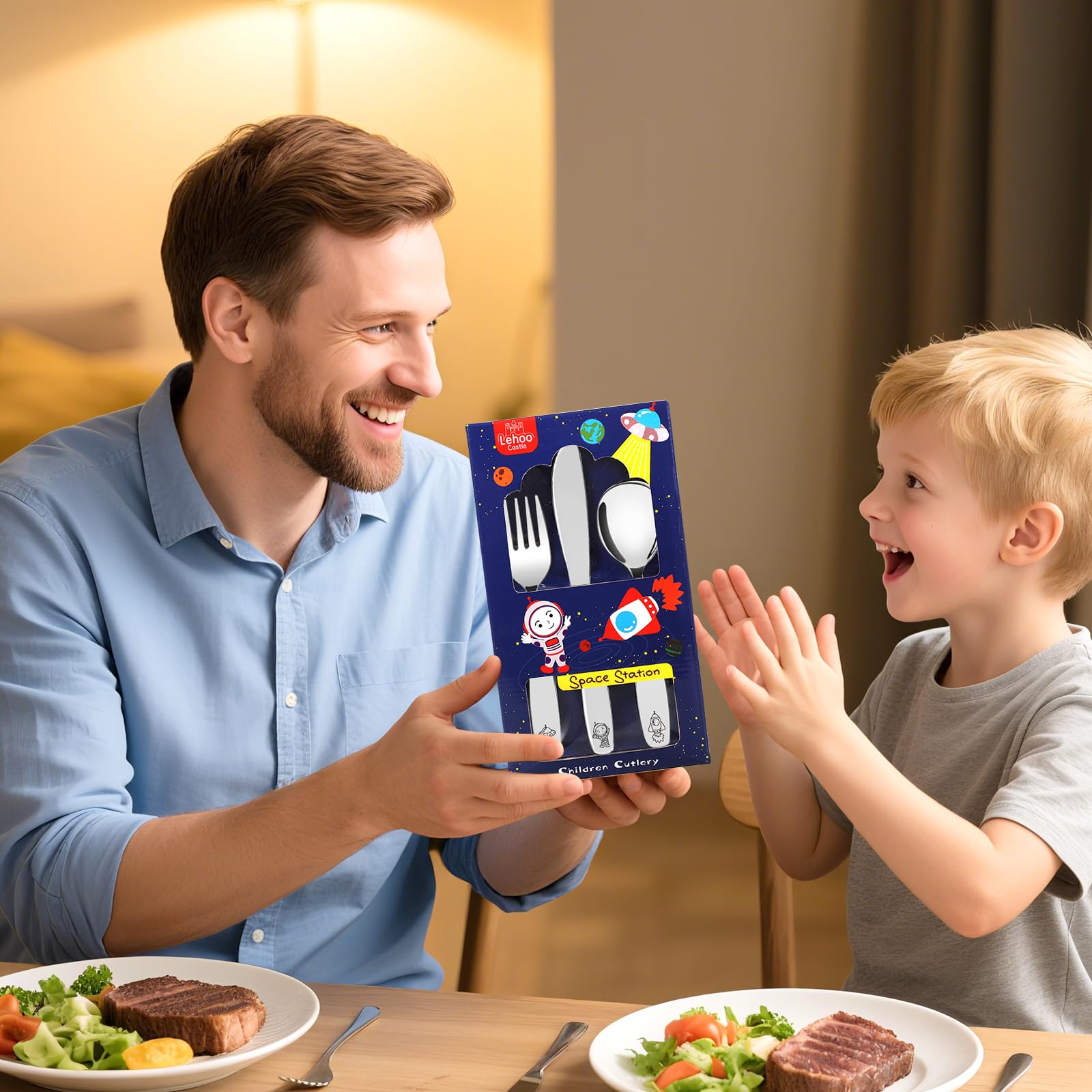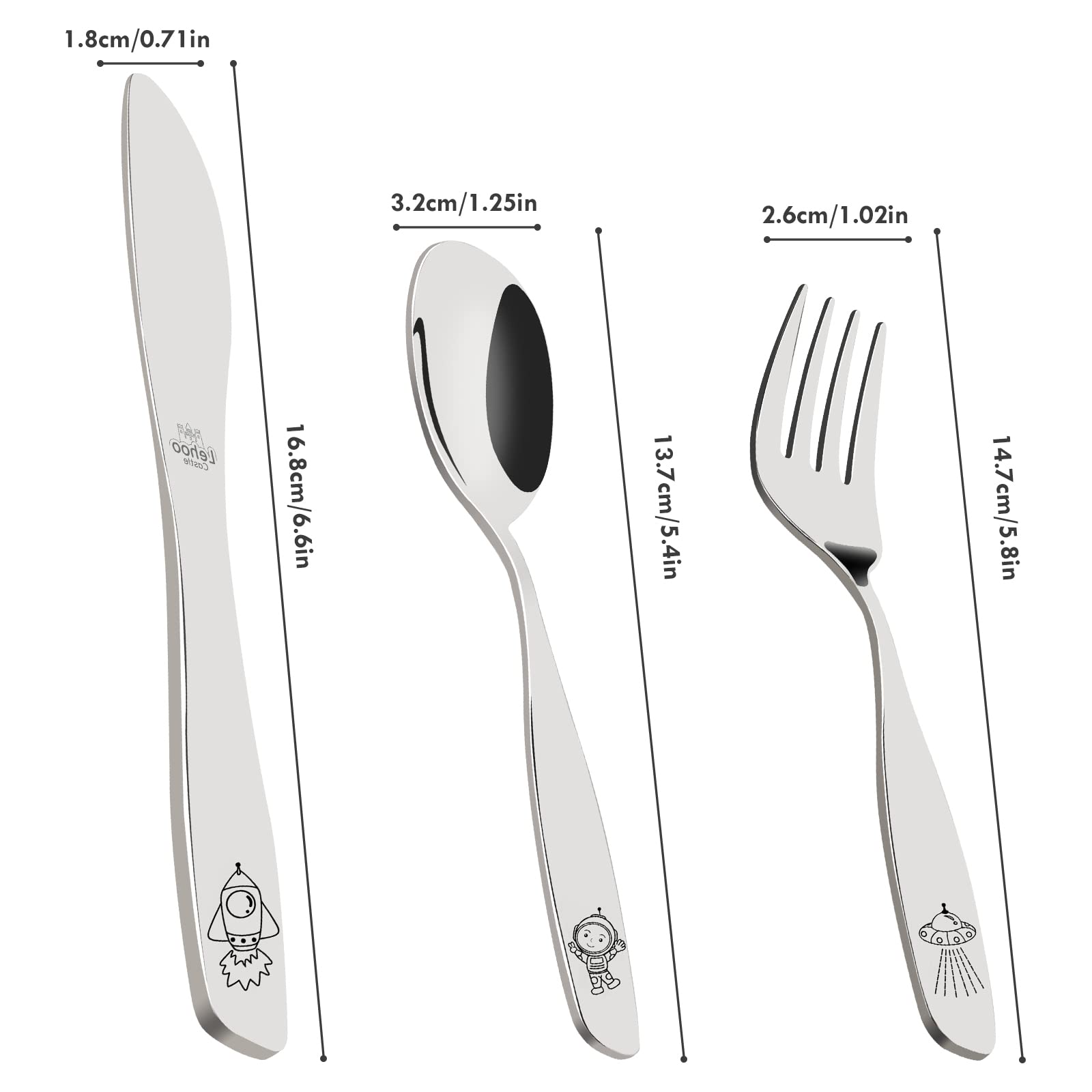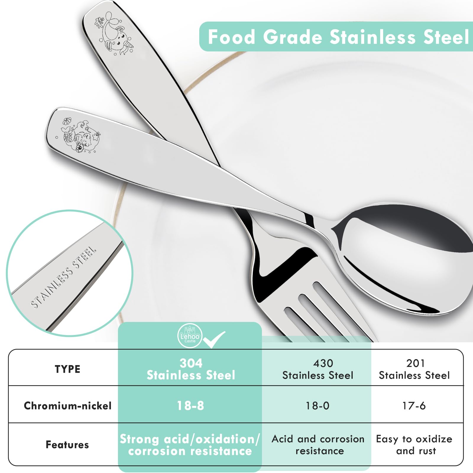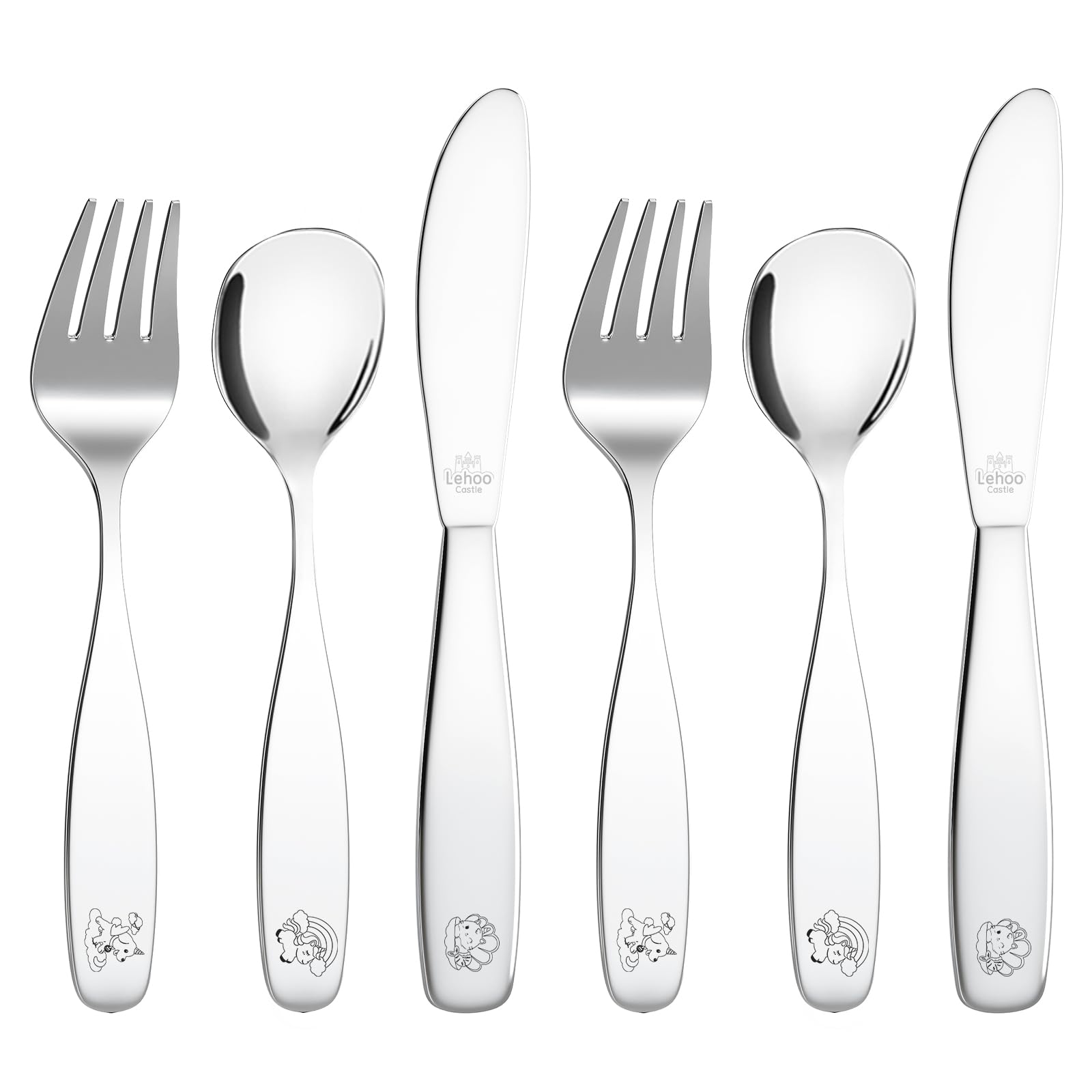 - Growing Up Essential Tableware Sets: Lehoo Castle kids silverware set includes 2 toddler spoons, 2 toddler forks, and 2 toddler knives—perfect for toddlers to school-age kids transitioning to full-size cutlery. Ideal for self-feeding with a design made just for little hands