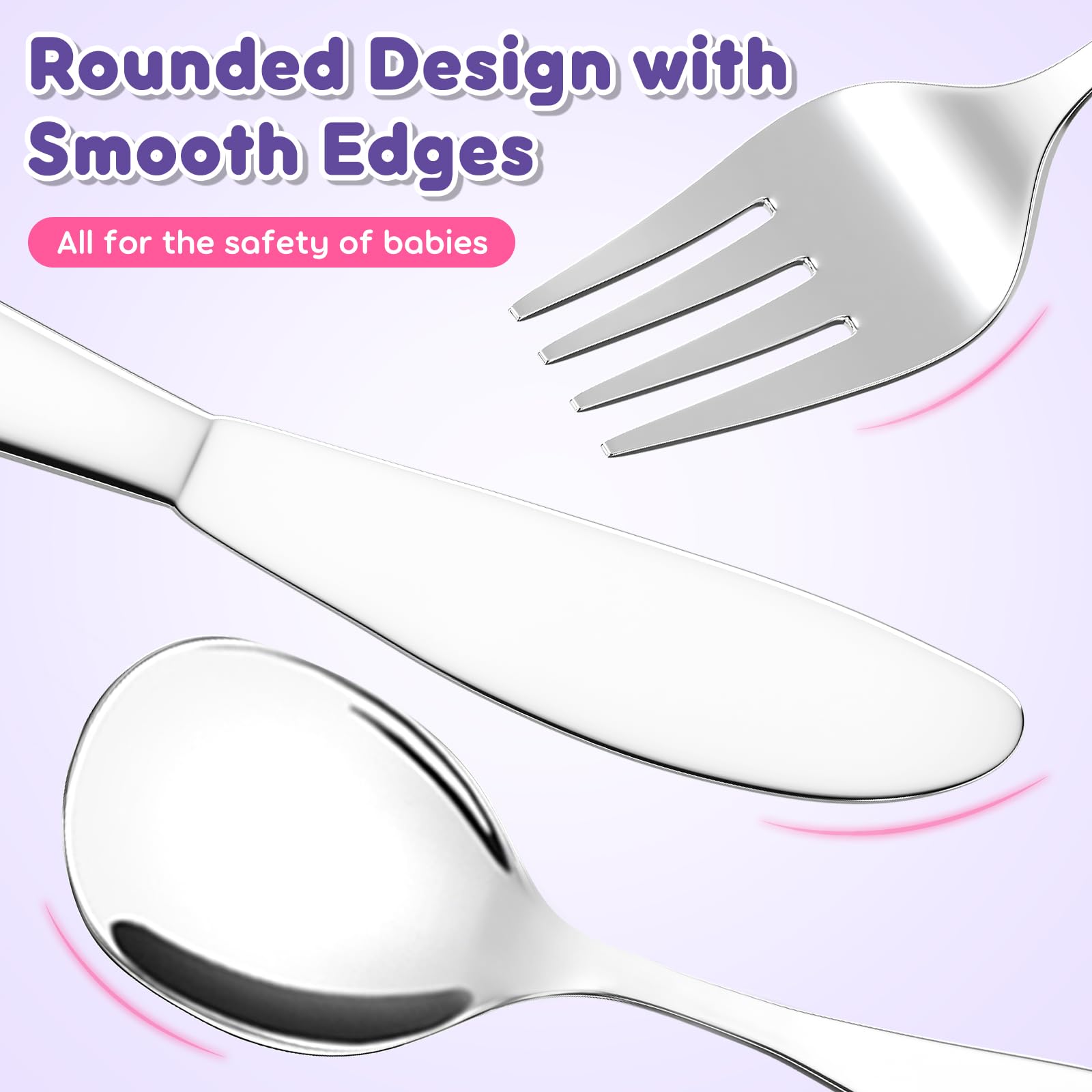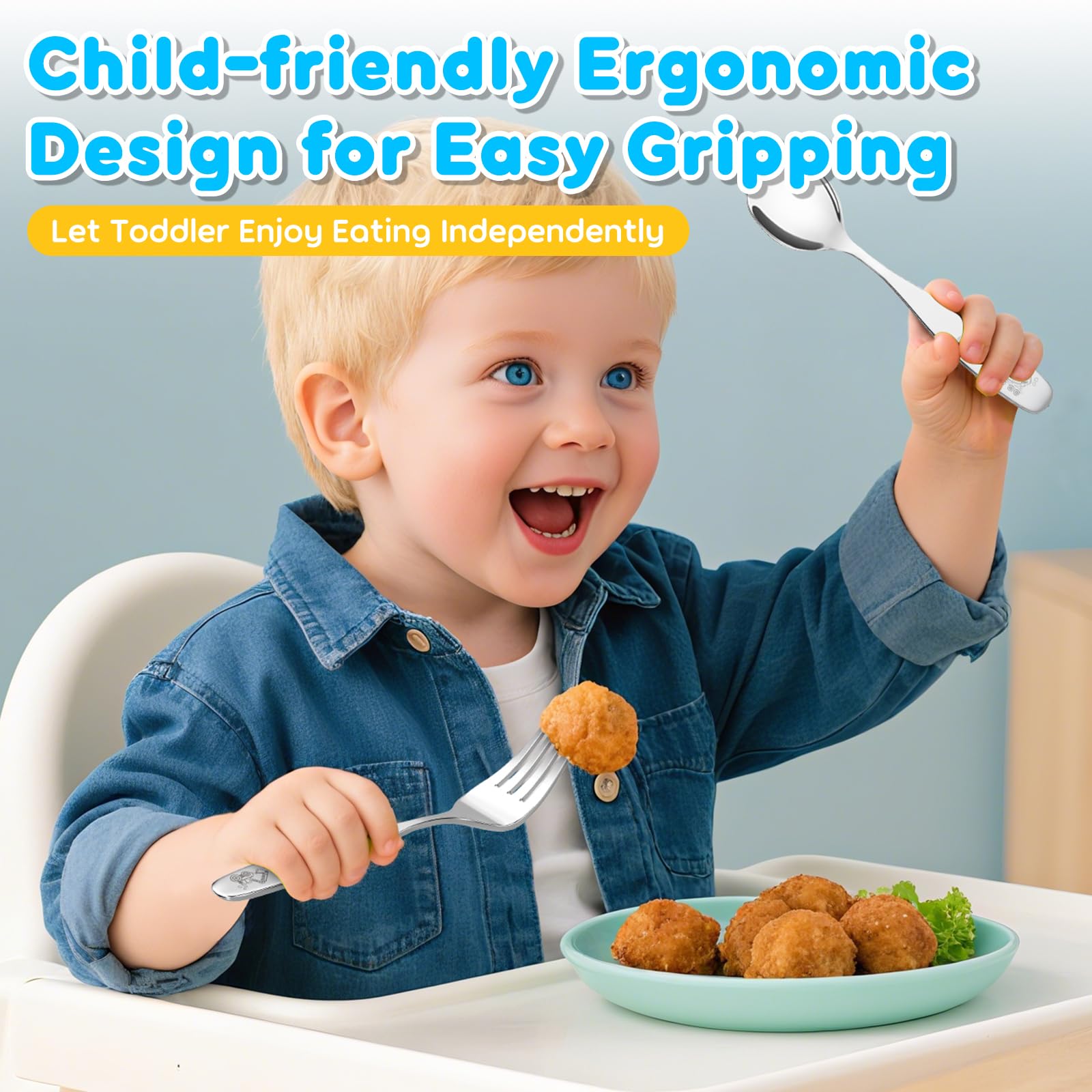 - Versatile for Any Meal: Perfect for any meal, our kids' stainless steel cutlery is versatile and fun with cute handle patterns. From cereal to veggies, it’s great for busy parents. A thoughtful gift for baby showers, birthdays, and Christmas