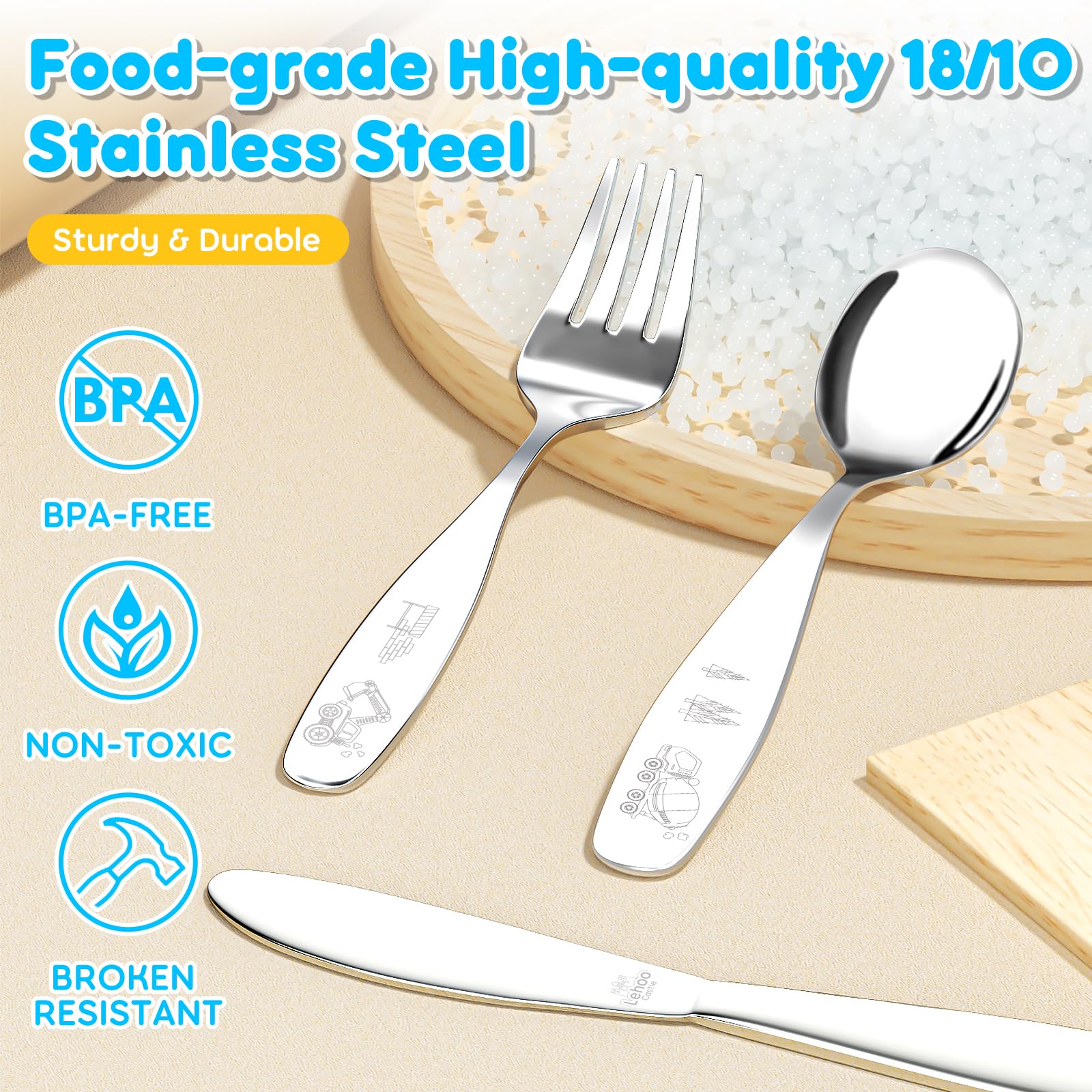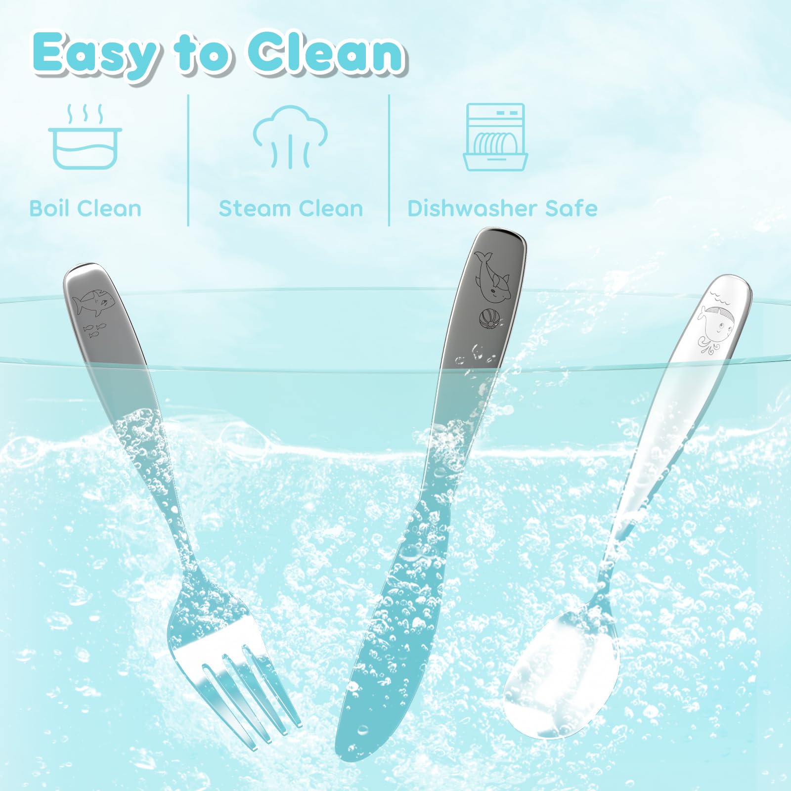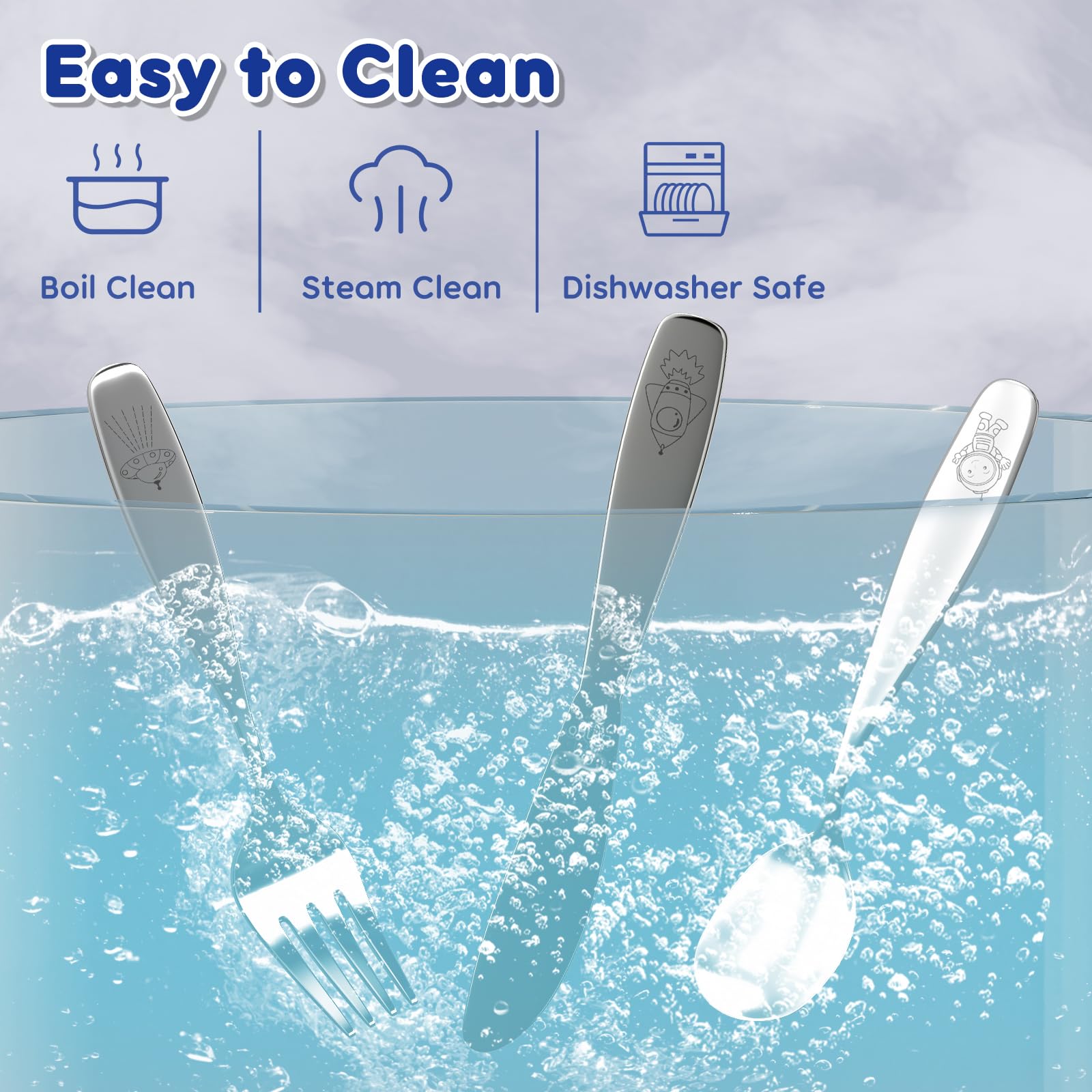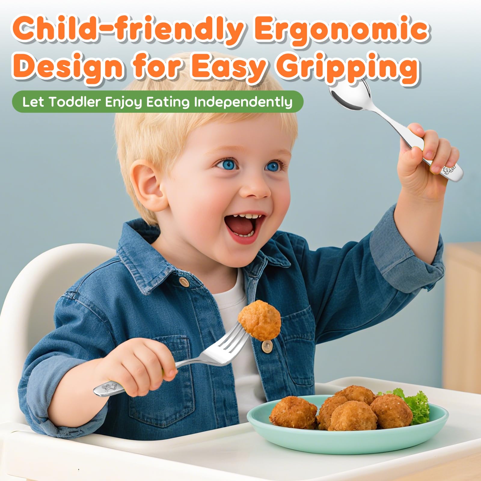 - Premium 18/10 Stainless Steel: Made of high-quality, food-safe 18/10 stainless steel, these durable utensils resist rust and are non-toxic. Dishwasher safe for easy cleanup, they’re built to last and ensure safe, healthy mealtime fun for your child