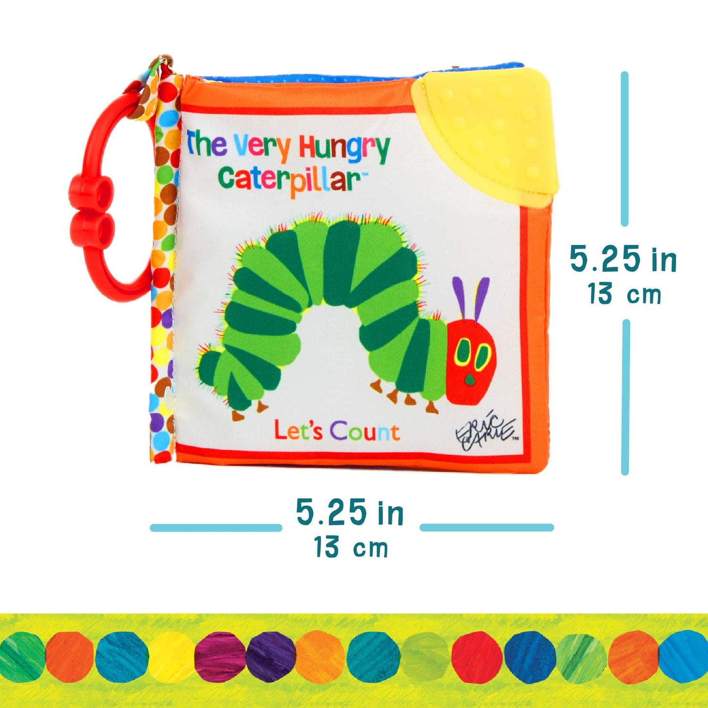 Let's Count Soft Book - World of Eric Carle the Very Hungry Caterpillar Baby on the Go Clip Teething Crinkle Soft Sensory Book for Babies, 5.25x5.25 Inch