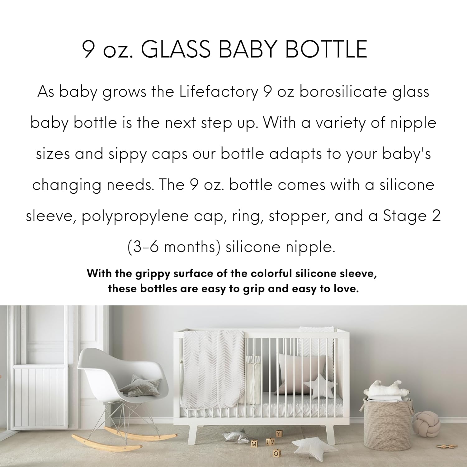 - DISHWASHER SAFE TOP RACK RECOMMENDED. The Lifefactory 9 oz borosilicate glass baby bottle is the next step up. With a variety of nipple sizes and sippy caps our bottle adapts to your baby's changing needs.