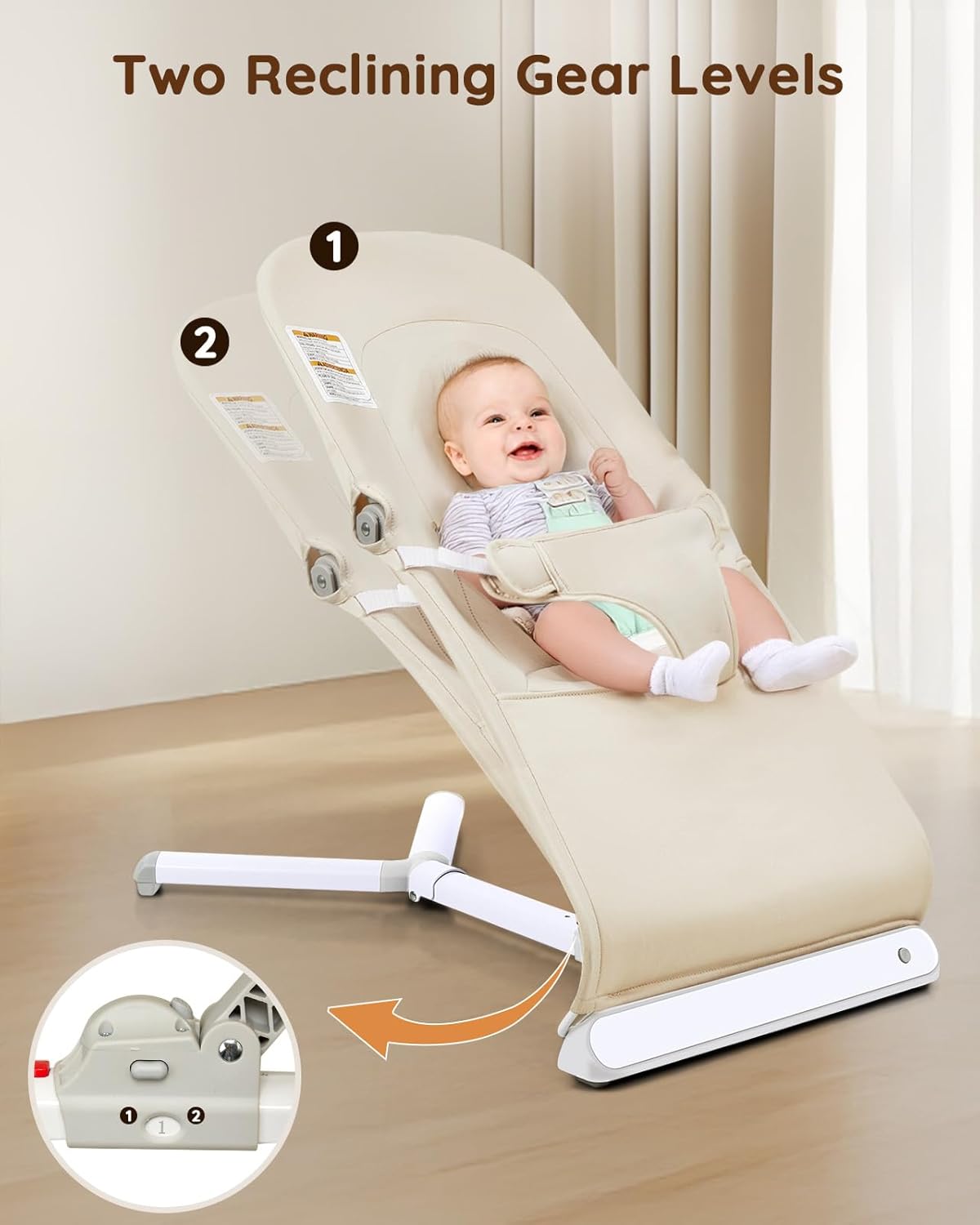 - Instant Fold Design: Our infant bouncer seat has a foldable design. The included storage bag fits in suitcases/car trunks, making it ideal for travel, grandparents’homes, or compact nurseries