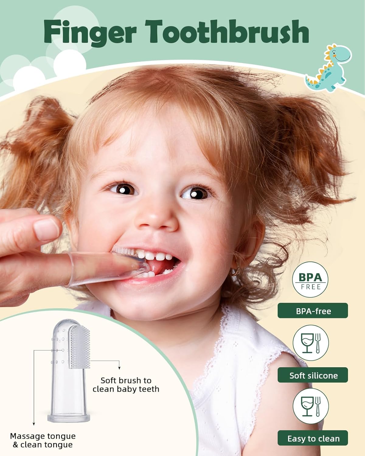 The finger toothbrush is made of BPA-free soft silicone, safe for cleaning young teeth and gums. Greatly help mom to clean baby's teeth.