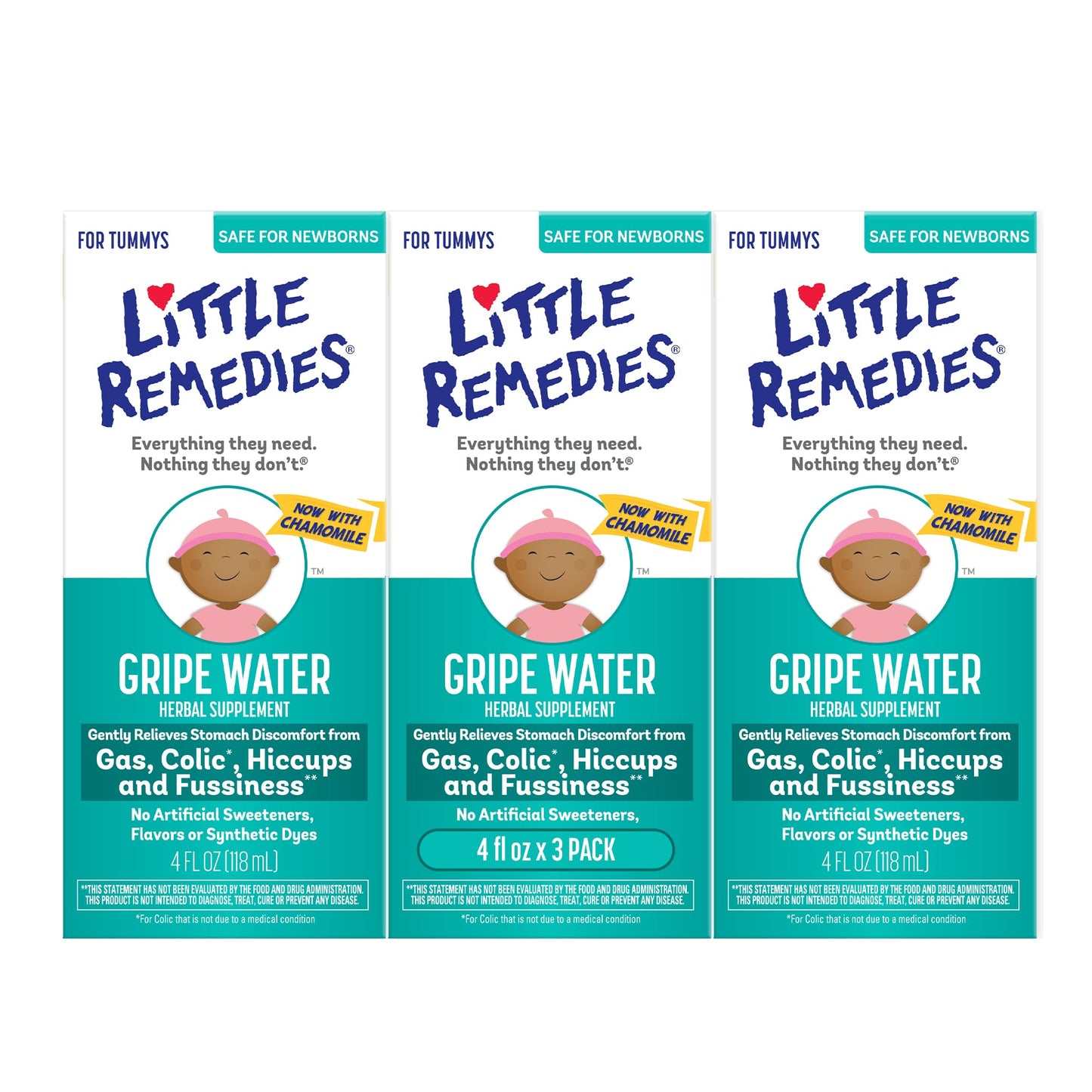Little Remedies Gripe Water for Babies, Colic and Baby Gas Relief for Newborns, 4 Fl Oz, 3 Pack