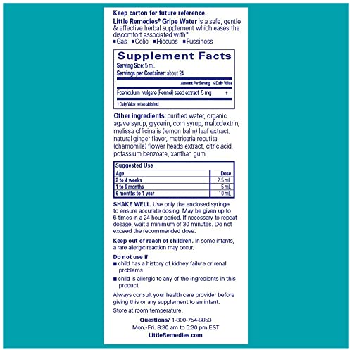 - Little Remedies Gripe Water for babies gently relieves occasional stomach discomfort from gas, colic*, fussiness, and hiccups** *For colic that is not due to a medical condition