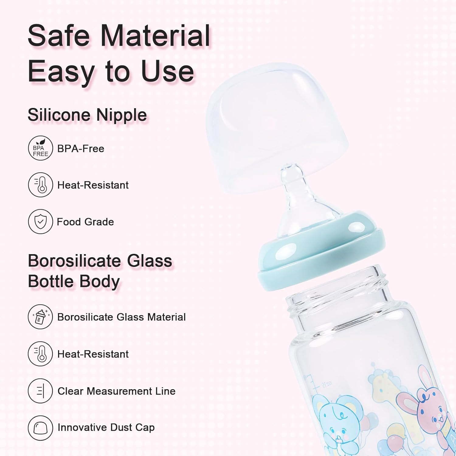- Premium Quality Material: Enjoy the safety and purity of our all-glass, BPA-Free bottle, designed for long-lasting use and a premium feeding experience. The smooth, ergonomic shape fits comfortably in your hands, while the fast-flow nipple delivers an optimal, comforting sip every time. It’s not just a bottle – it’s a perfect blend of charm and functionality.