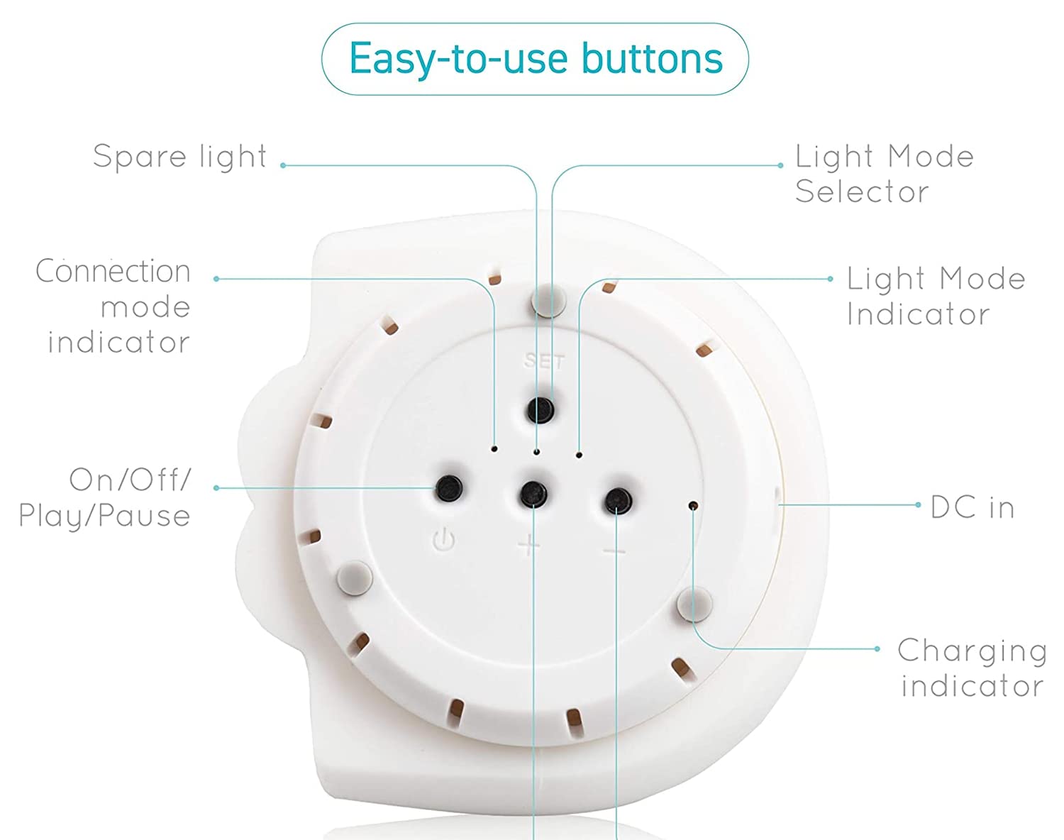 - Connect the nightlight to your mobile device and enjoy your child's favorite songs!