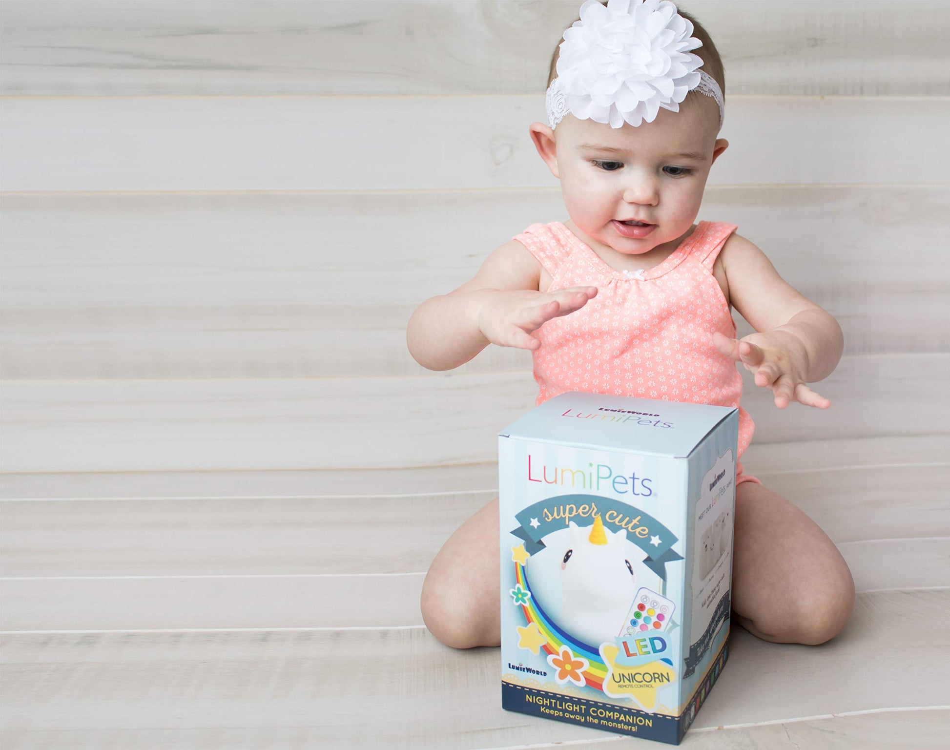 - The LumiPet child's night light comes with an instruction manual, remote control, and USB cord. Your LumiPet can be turned on and off and cycled through the colors without the remote. The battery can be recharged with any standard USB cord. Choose a bear, owl, or unicorn as your child's new musical best sleeping friend!