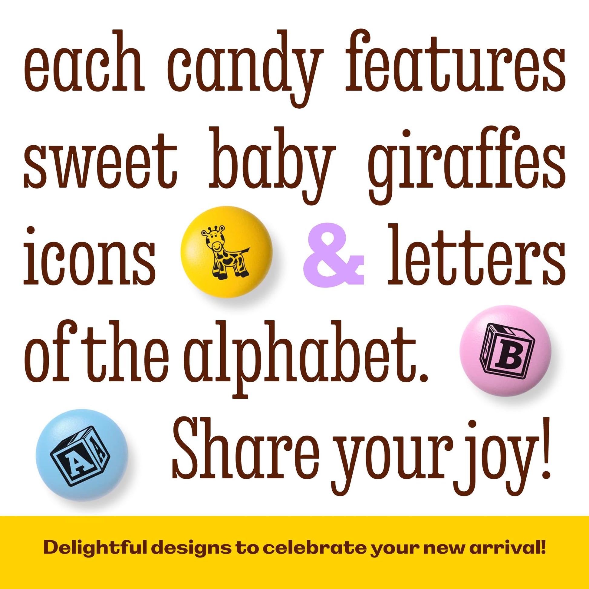 - Themed Icons Included: Each M&M'S candy features baby-themed icons like giraffes and footprints, along with "Oh Baby" and "It's a Boy" messages