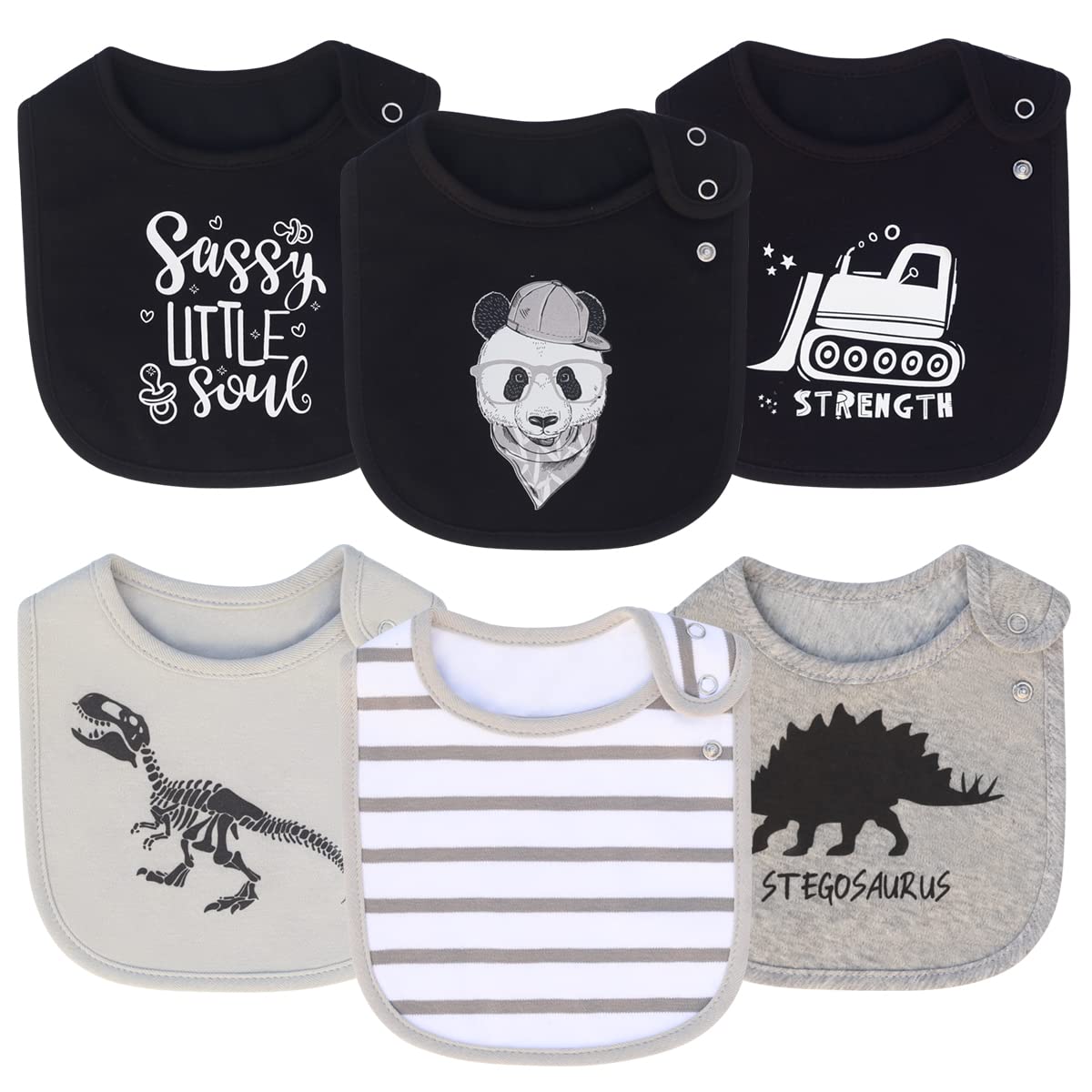Maiwa 6 Pack Waterproof Cotton Baby Bibs for Girls Boys for Drooling Eating with Snaps