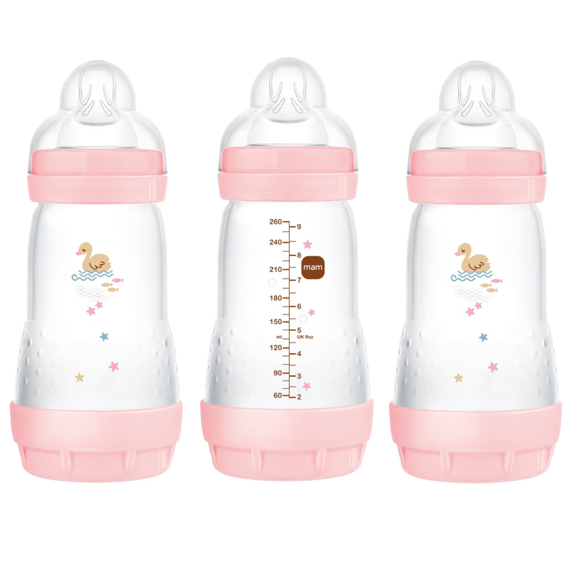 - MAM Original Easy Start Medium Flow Anti Colic Baby Bottle, 9 oz / 266 ml, pink baby bottle for your baby girl.
