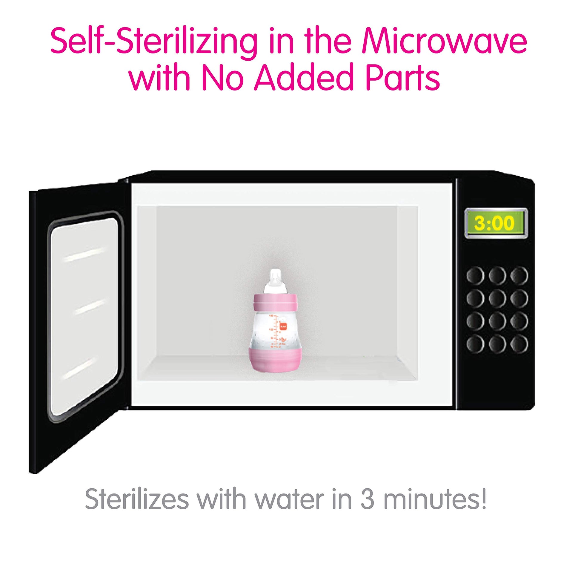 - EASY CLEAN - No need for a separate bottle sterilizer: MAM bottles self-sterilize in the microwave in 3 minutes, meaning fewer baby items to take on the go