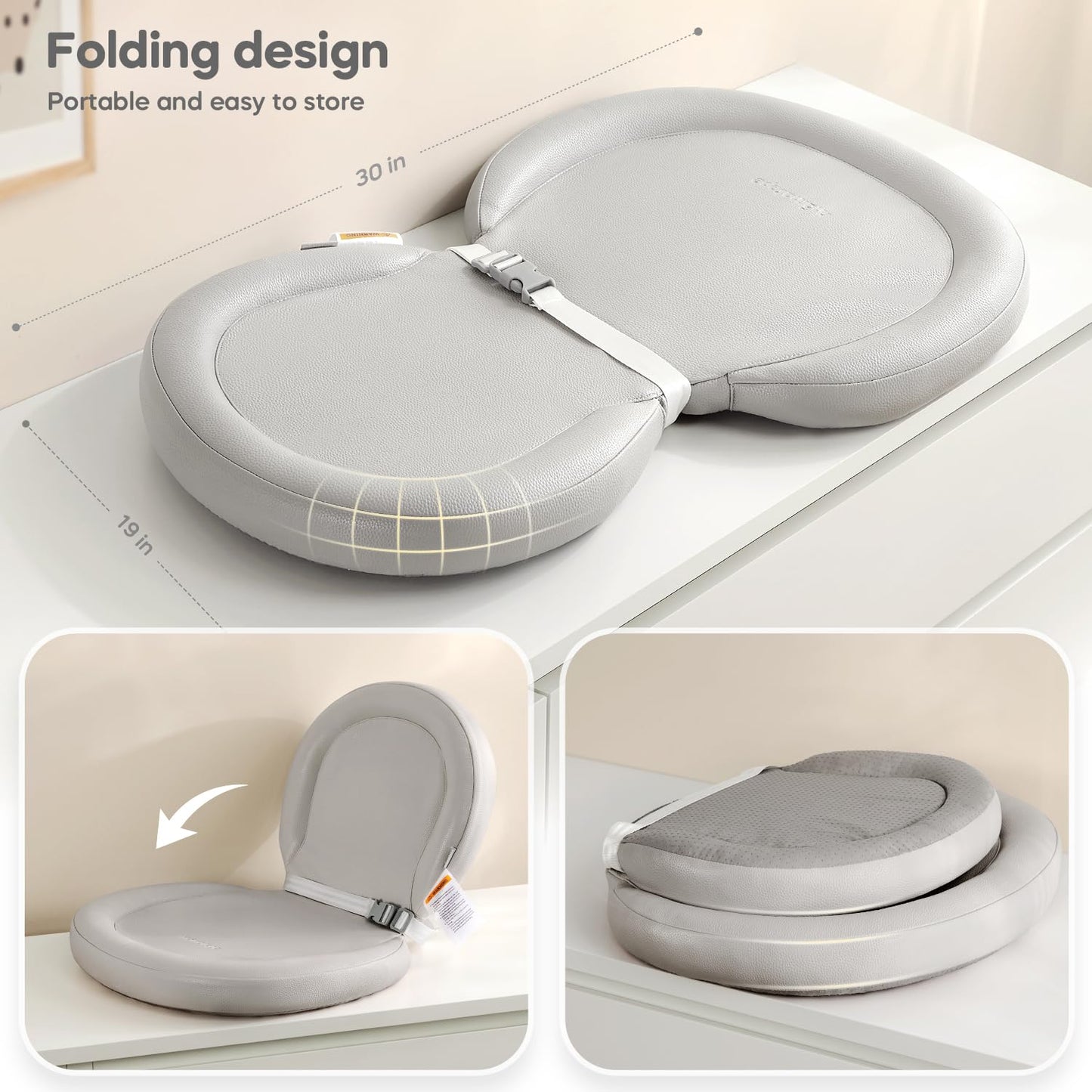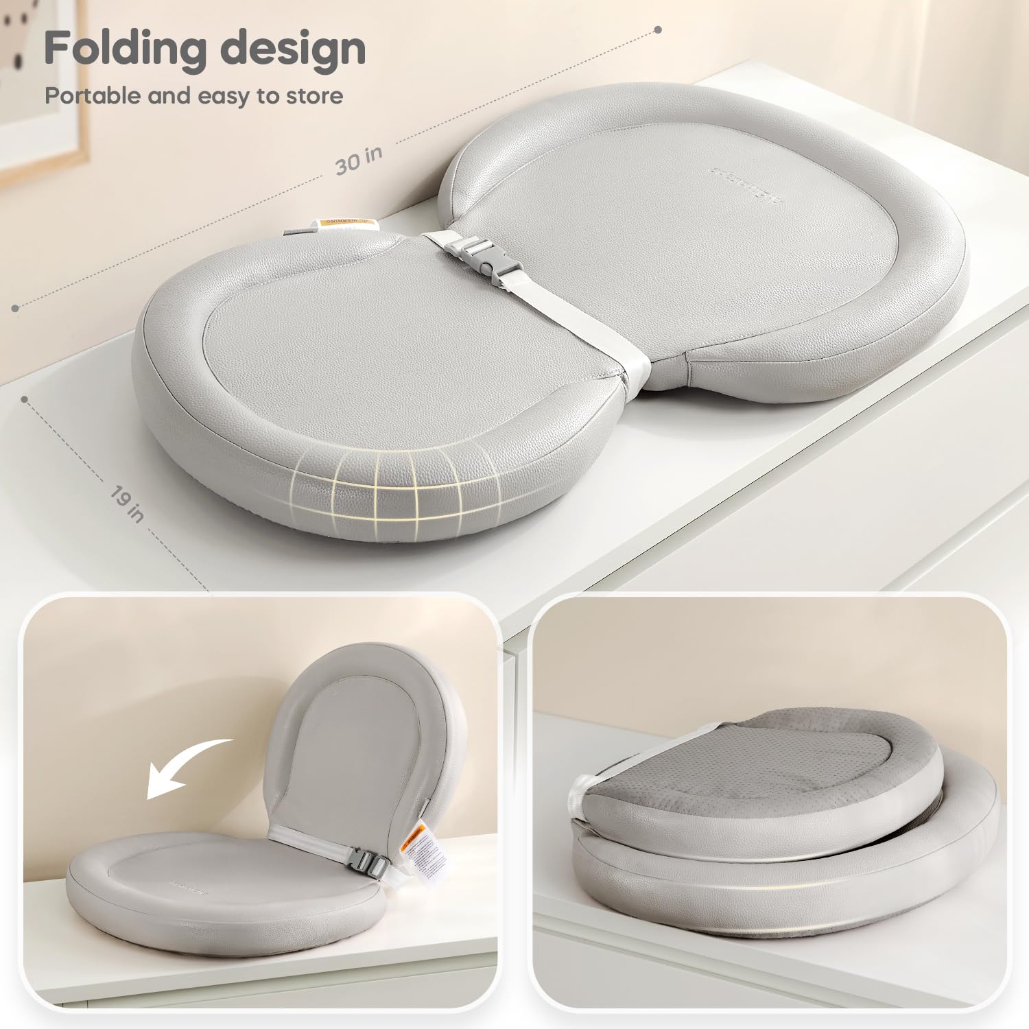 - Folding Peanut Shape: Designed with a unique peanut shape, this changing pad offers optimal support and comfort for your baby during diaper changes. Its foldable middle allows for easy storage and versatility in use.