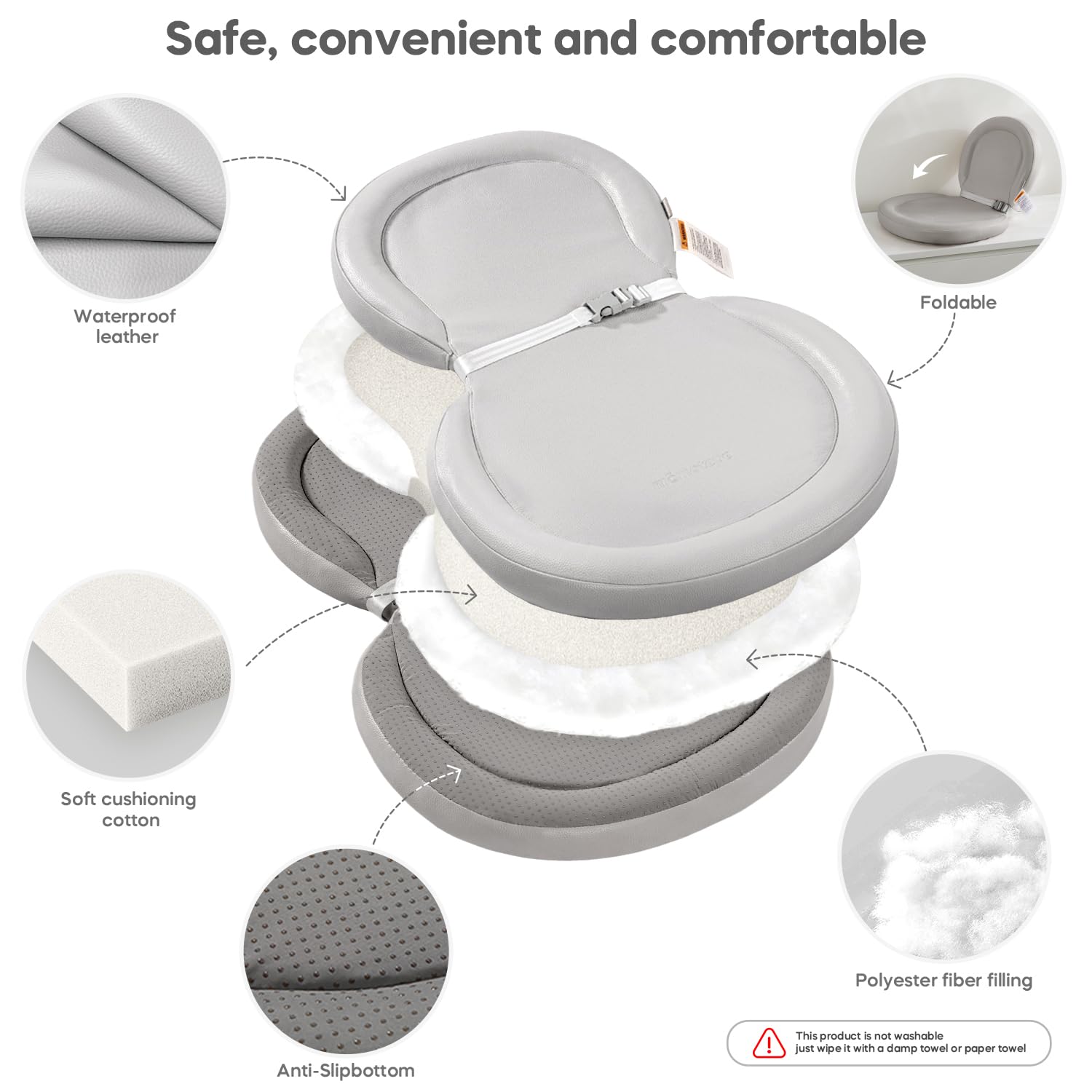 - Durable & Easy-to-Clean Outer Layer: Made from premium non-wrinkle leather, the outer layer is not only stylish but also water-resistant and easy to wipe clean, making it perfect for busy parents on the go.