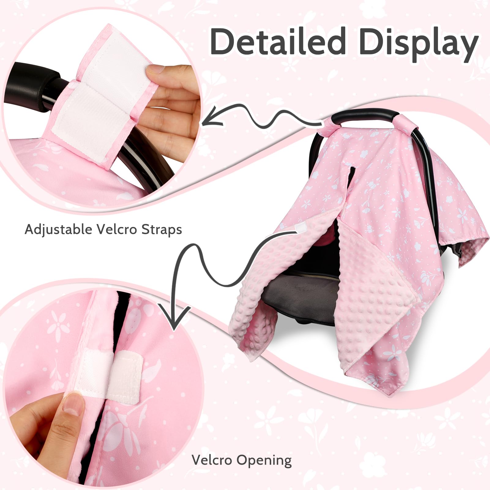 ManFaiSky Car Seat Cover Baby, Soft Carseat Covers Baby Girl, Multi-Use Nursing Cover & Infant Carseat Canopy, Pink