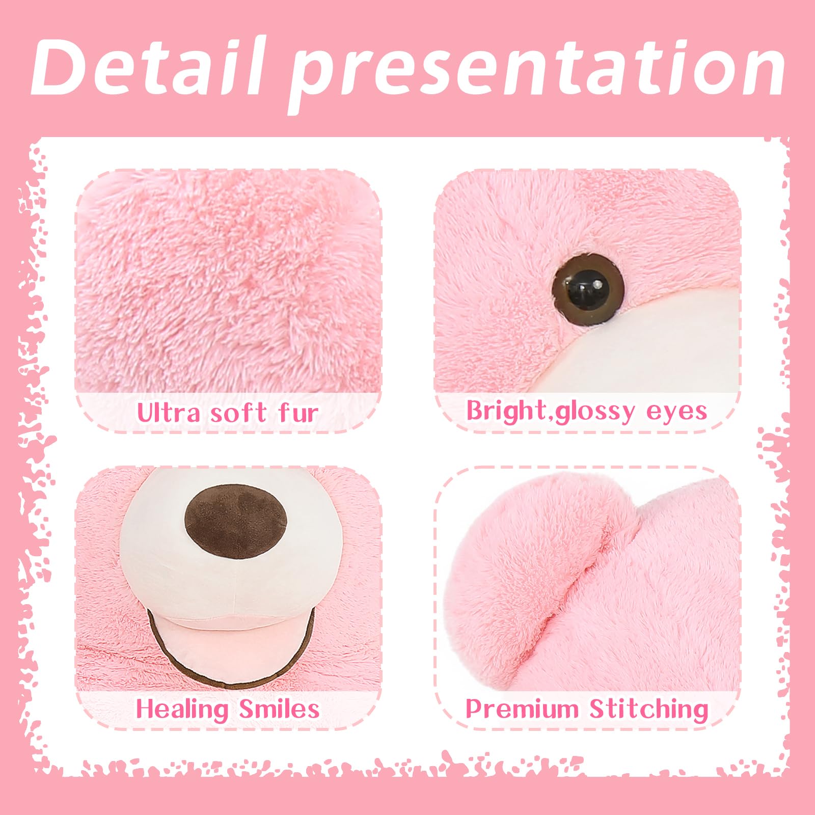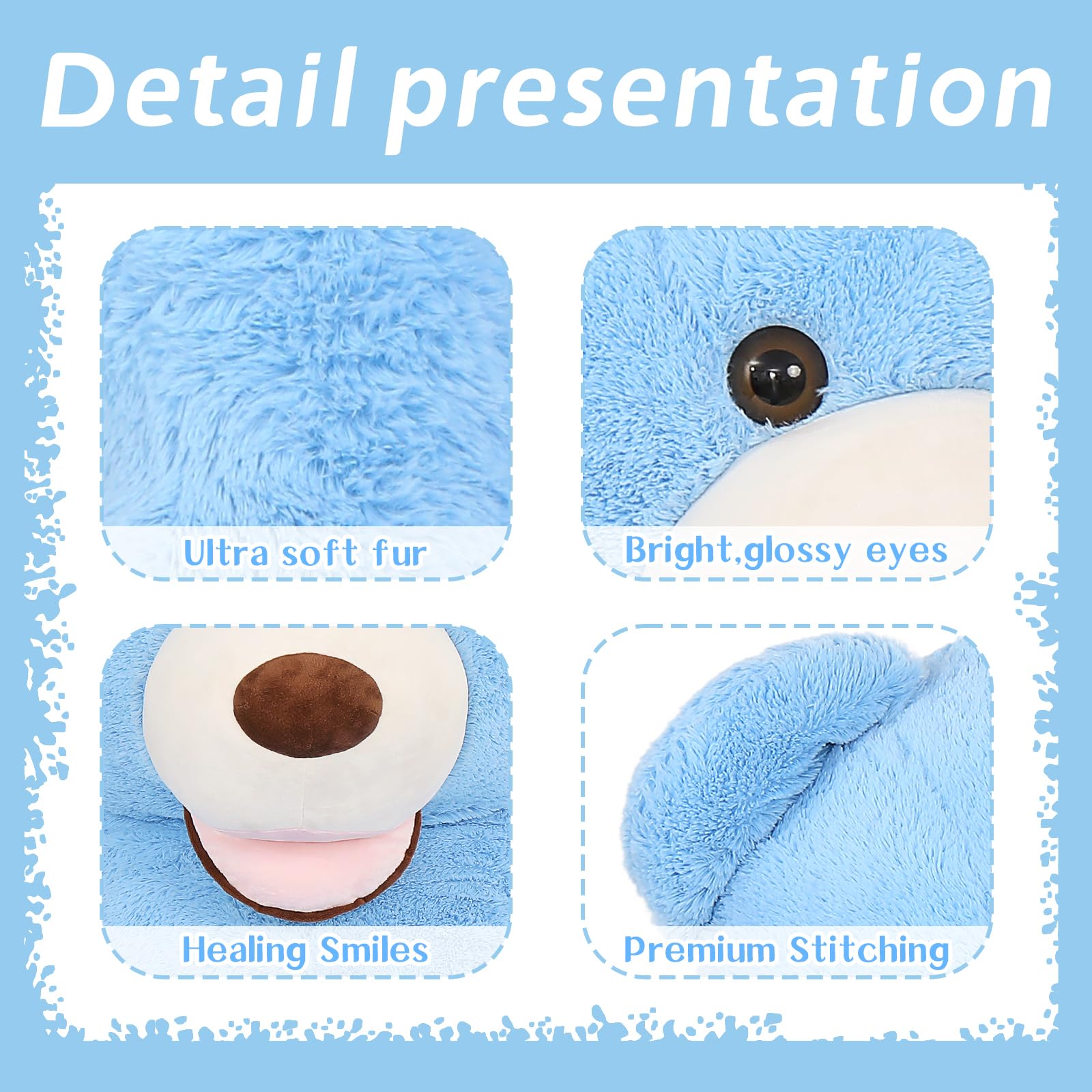 - Exceptional Quality: What sets this teddy bear apart is its exceptional quality and attention to detail. Expertly stitched to ensure durability, it can withstand countless hugs and cuddles, making it a long-lasting companion. Create cherished memories that will last a lifetime with this high-quality giant teddy bear.