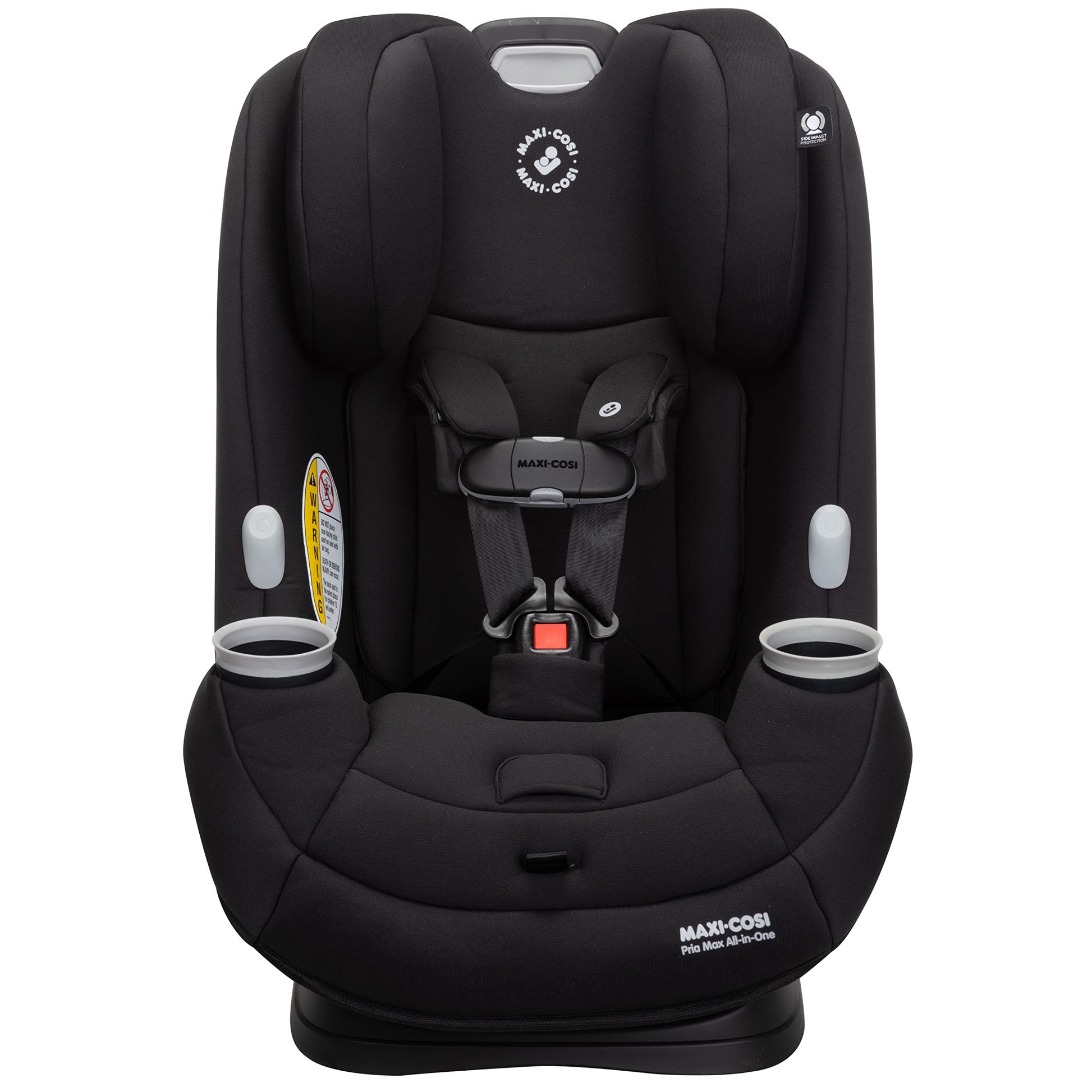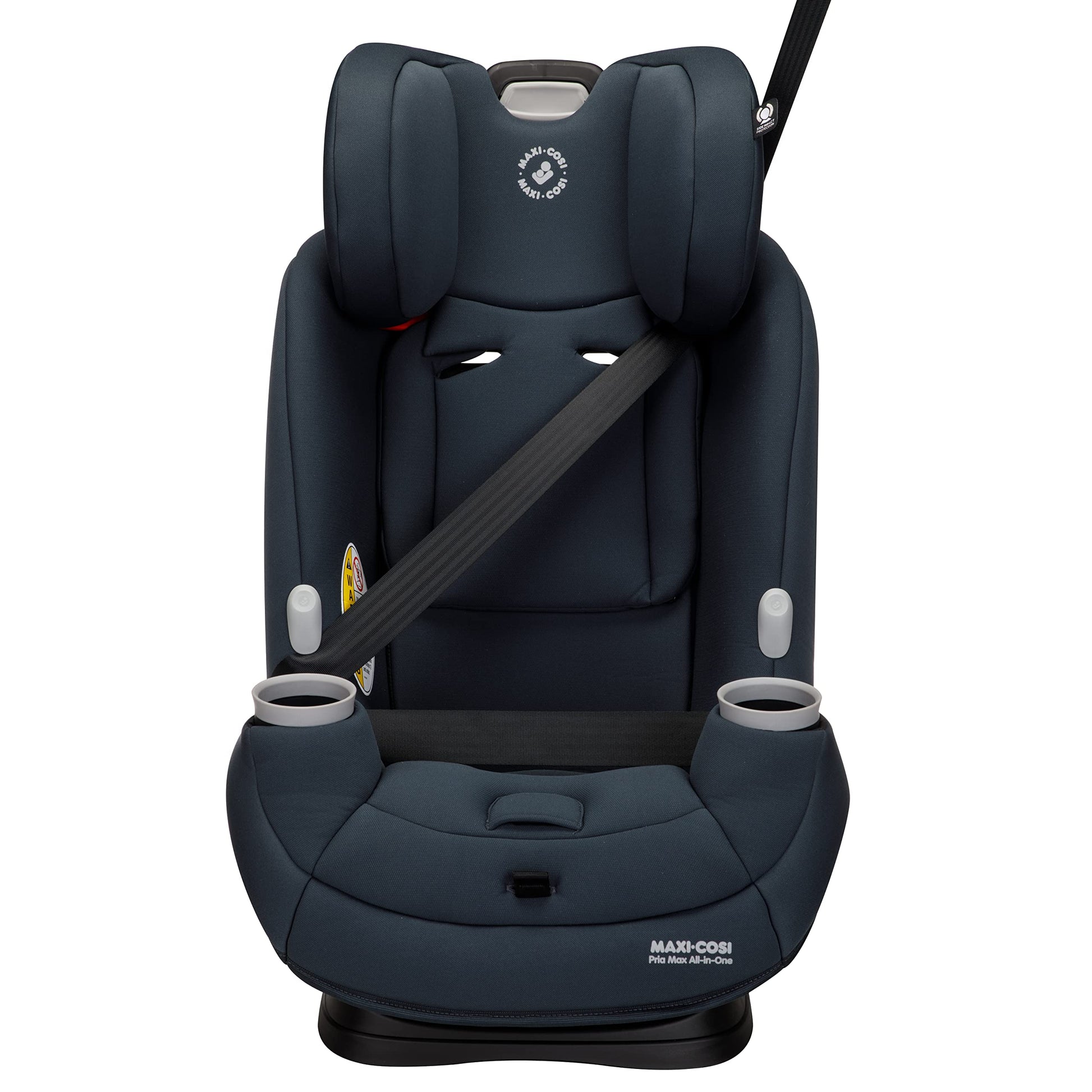 The Maxi-Cosi Pria Max All-in-One Convertible Car Seat is designed to accompany your child from birth to 10 years (4–100 lbs.). This car seat offers flexibility with rear-facing (4–40 lbs., 19"–40"), forward-facing (22–65 lbs., 29"–49"), and belt-positioning booster (40–100 lbs., 43"–52") options. The Pria Max makes securing your child quick and struggle-free with the ClipQuik magnetic chest clip that can be opened with one hand. The Out-of-the-Way spring assist harness system prevents fumbling with straps and buckles. Crafted with PureCosi fabrics, the car seat fabric is free from wool and added fire retardants. The Pria Max features soft, plush fabric, padding, and cushions that can easily be removed for machine washing and drying. Installation is straightforward with one-click LATCH connectors, making the process hassle-free. From your newborn's first ride home to your big kid's school drop-off, the Maxi-Cosi Pria Max All-in-One Convertible Car Seat is a reliable, comfortable choice for modern families.