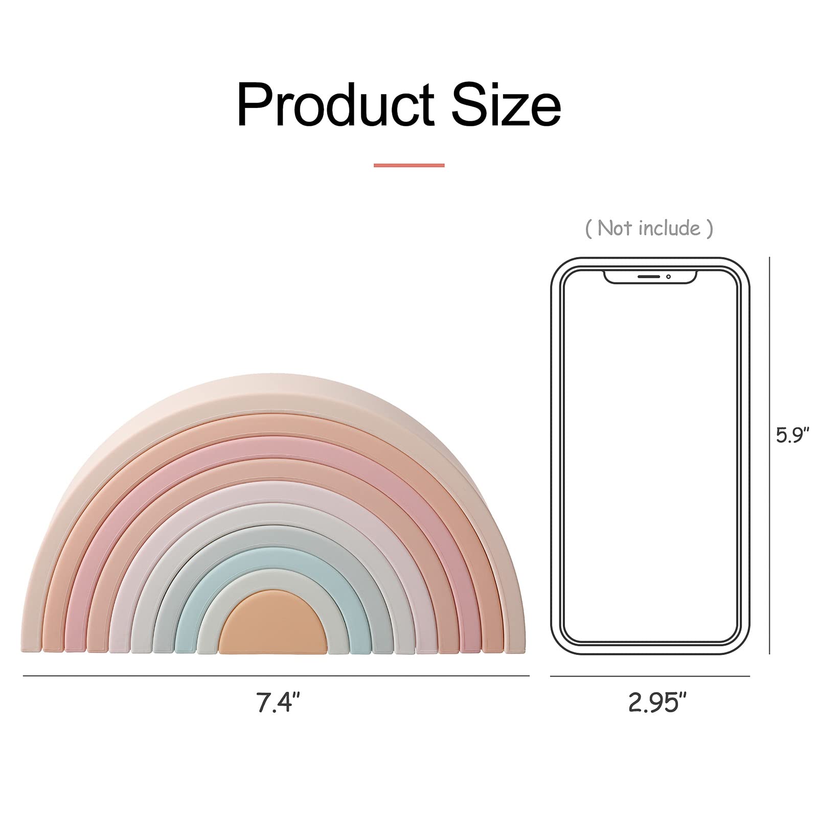 - 【PRODUCT SIZE】Our silicone rainbow toy comes with packege box, the size is 7.4inch x 1.3inch x 3.9inch(10 layers)