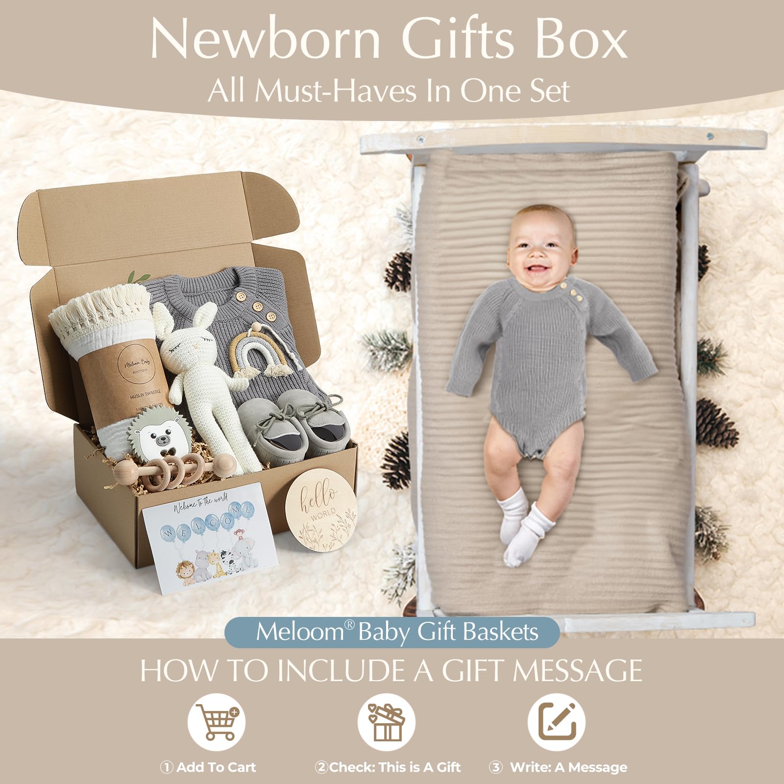 meloom Baby Gift Set, Unisex Newborn Gifts Box, Boho Gender Neutral Baby Essentials, for New Mom, New Baby Gifts for Boys and Girls, Personalized Gift Basket for New Babies