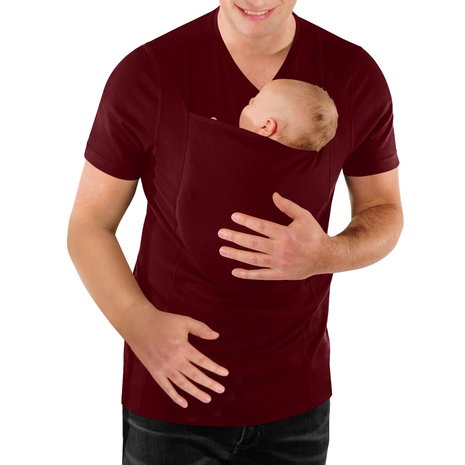 Mens Baby Carrier Shirt V Neck Short Sleeve T-Shirts for Men Skin to Skin T-Shirt with Pocket