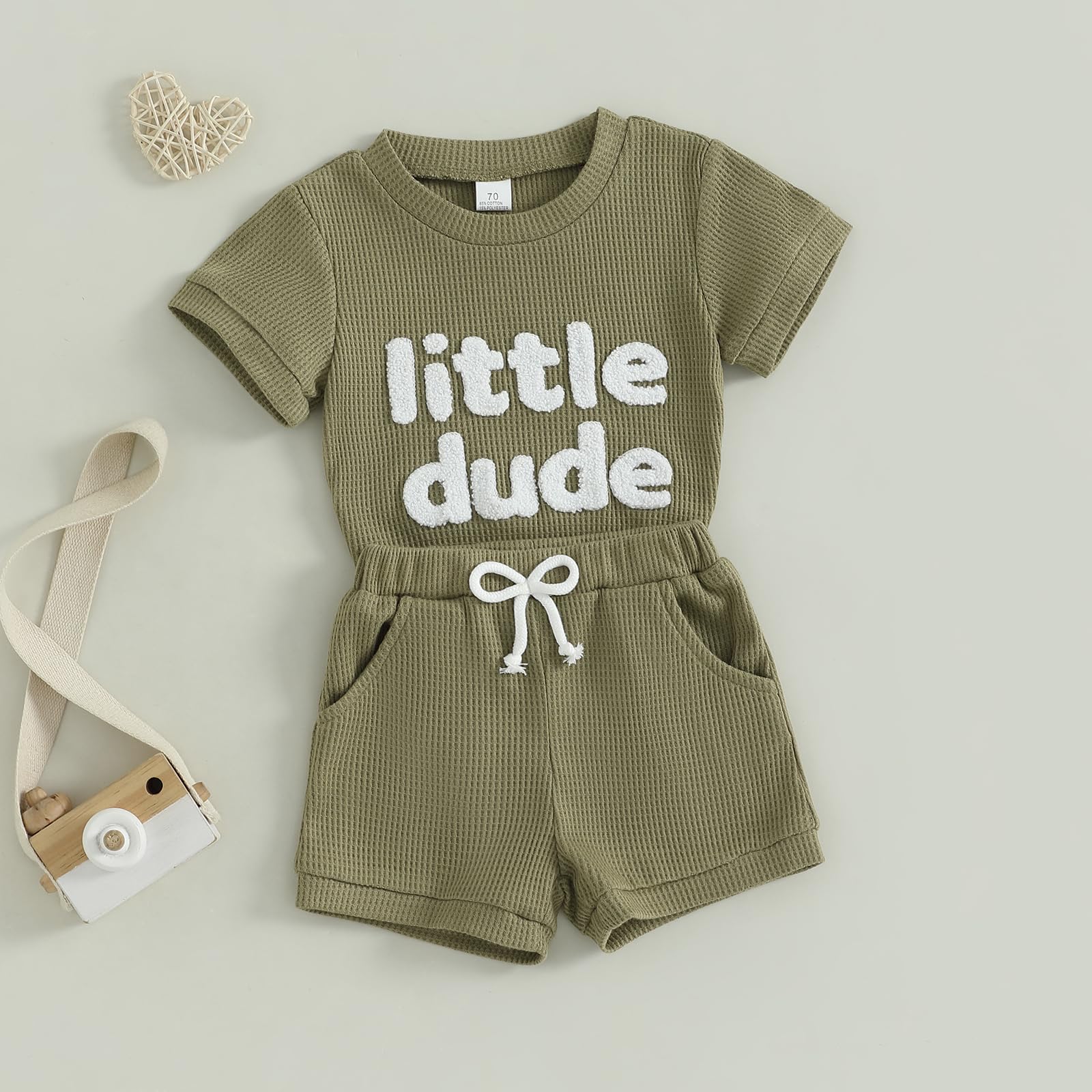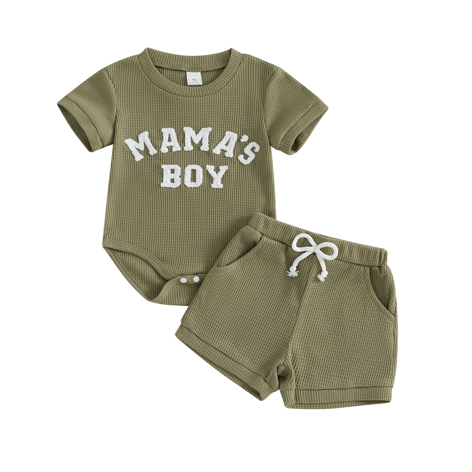 - Package: 1x Baby Boy Short Sleeve Romper + 1x Elastic Waist Shorts. Machine washable, hang to dry, please do not bleach.Baby boy waffle knit outfit, baby boy waffle knit set, baby boy knit outfit,cute baby boy's clothing, mamas boy baby clothes, little dude baby outfit